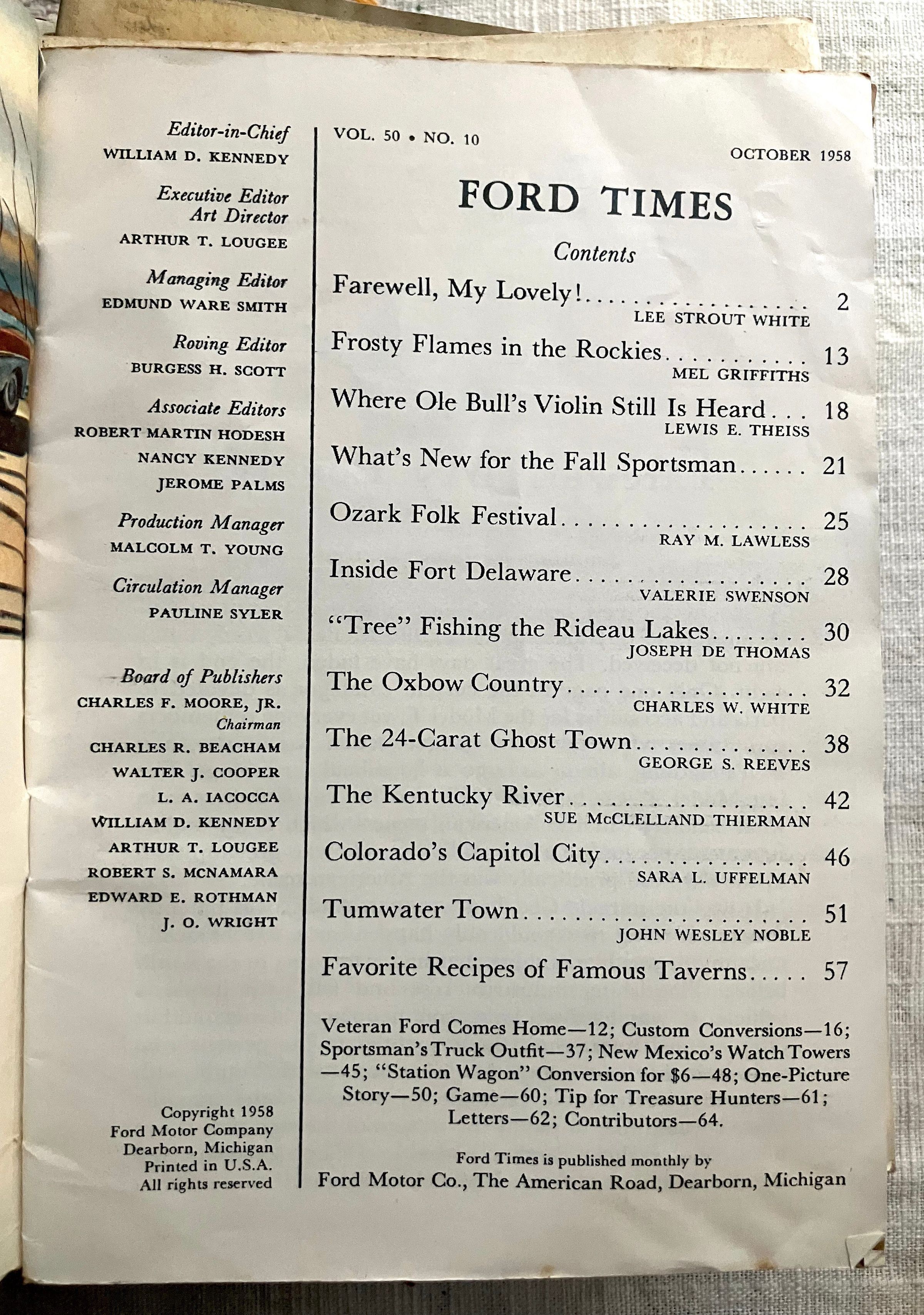 Ford Motor Company published Ford Times magazine from 1908 to 1917 and again from 1943 to 1993. Intended for dealers and consumers, the publication was key to Ford's public relations efforts. With articles emphasizing a range of topics, including automobiles but also recreation, food, history, nature, and culture, Ford Times became an important document of 20th-century American life. - The Henry FordCreate Date