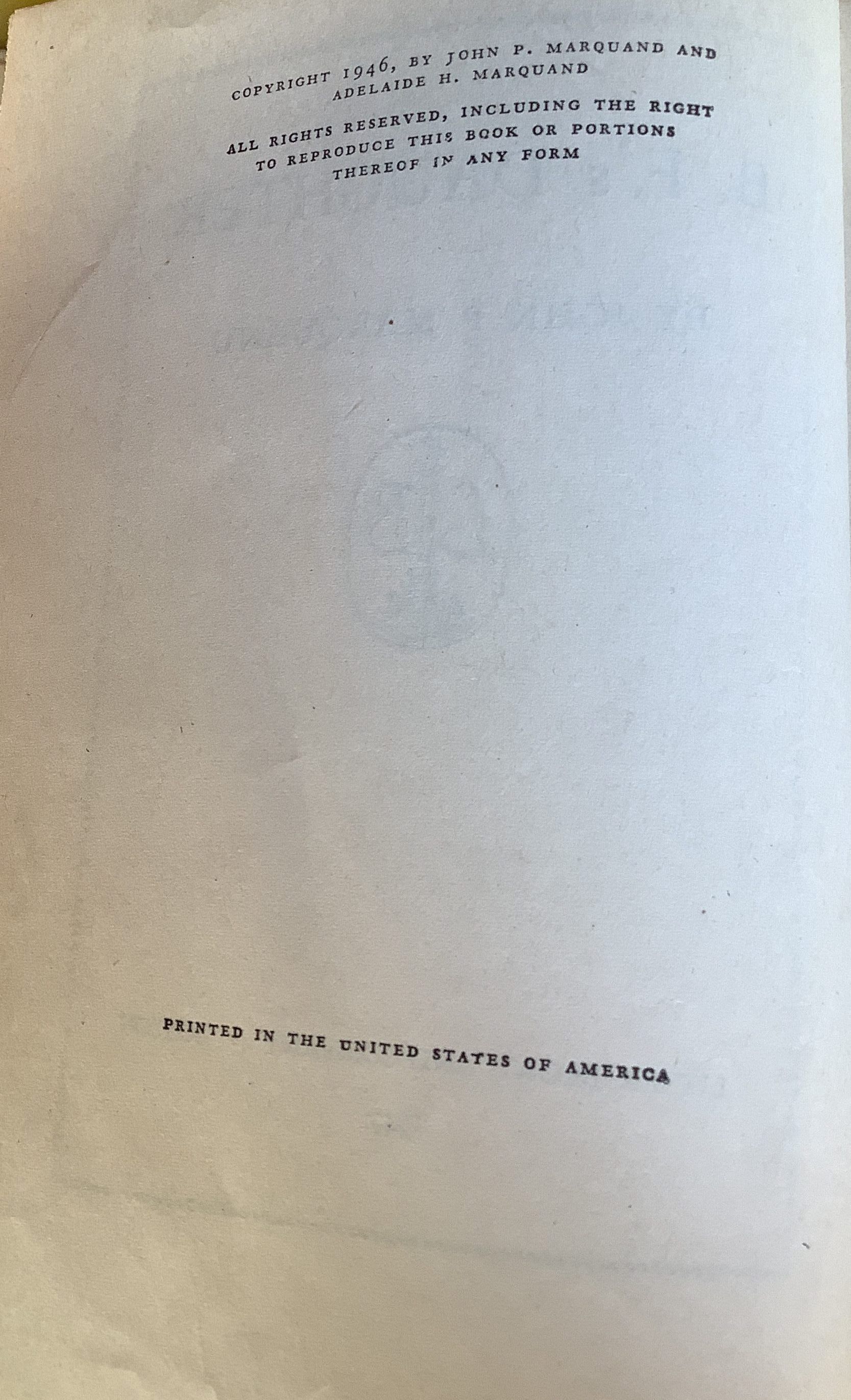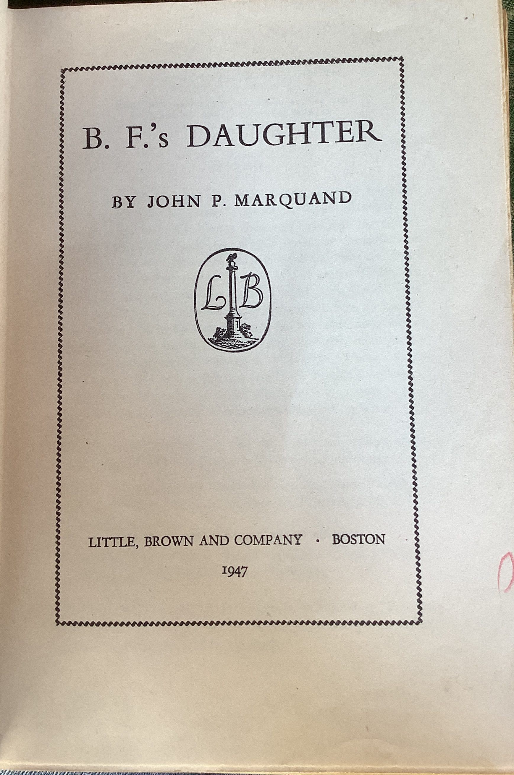 A richly detailed, elegantly crafted tale about the search for happiness in the chaos of wartime, B.F.’s Daughter is one of John P. Marquand’s warmest and most empathetic novels.” — Fantastic FictionInscription/Signature/Marks