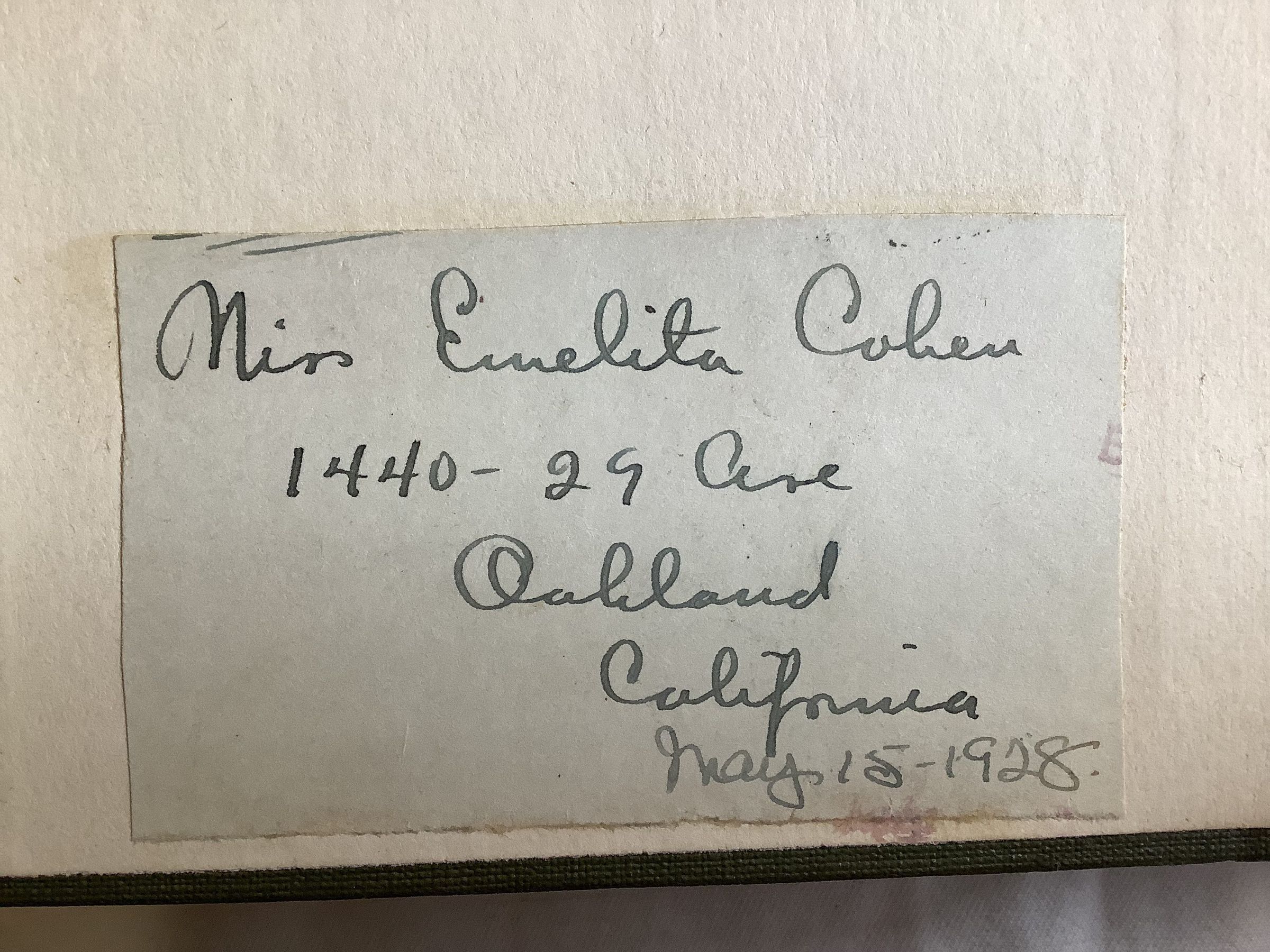 Miss Emelita Cohen 1440 29 Ave Oakland, California. May 15, 1928.Language