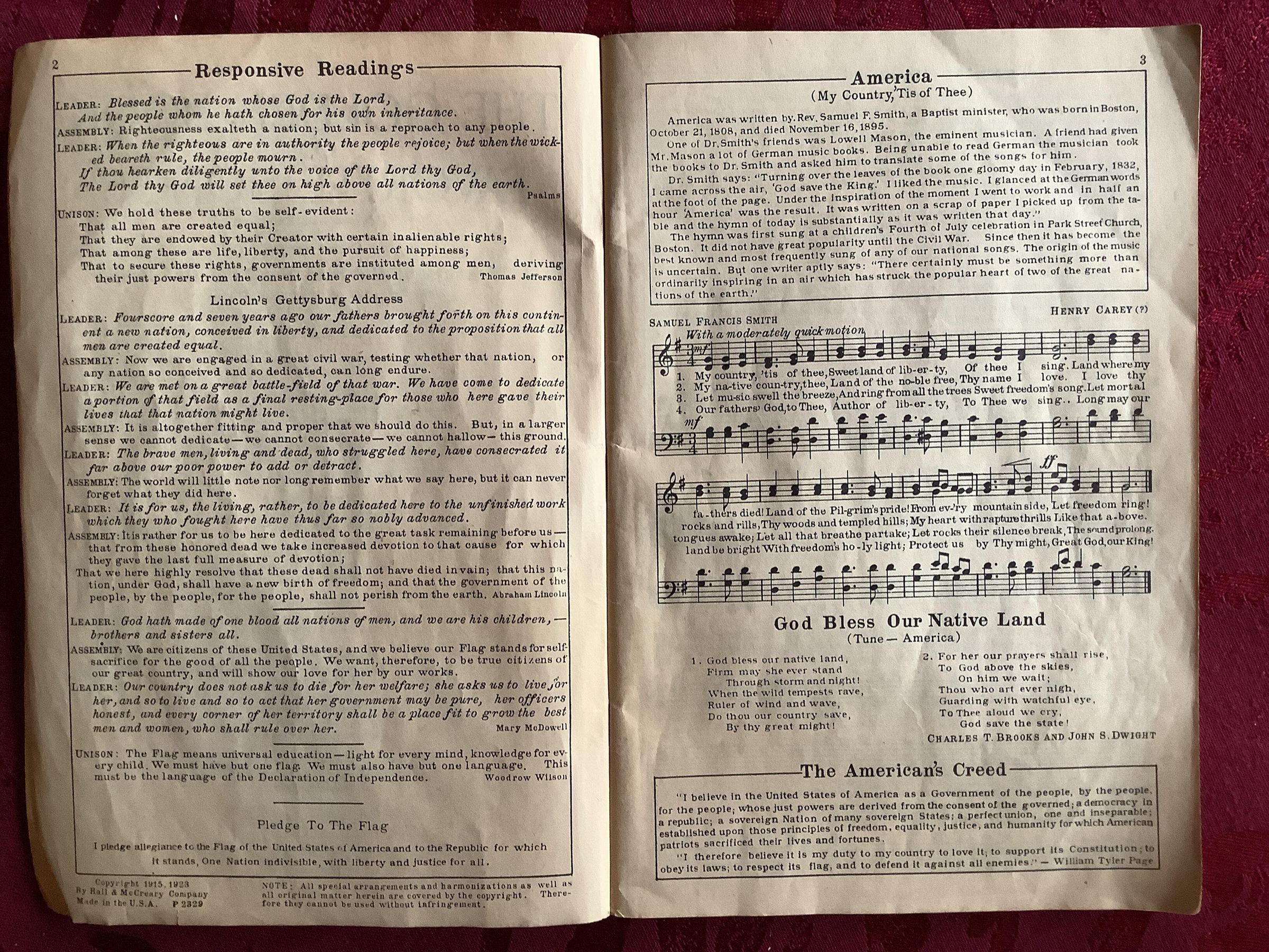 Publishers Hall & McCreary Company, Chicago. Copyright 1915, 1923. Made in the U.S.A. P 2329.Inscription/Signature/Marks