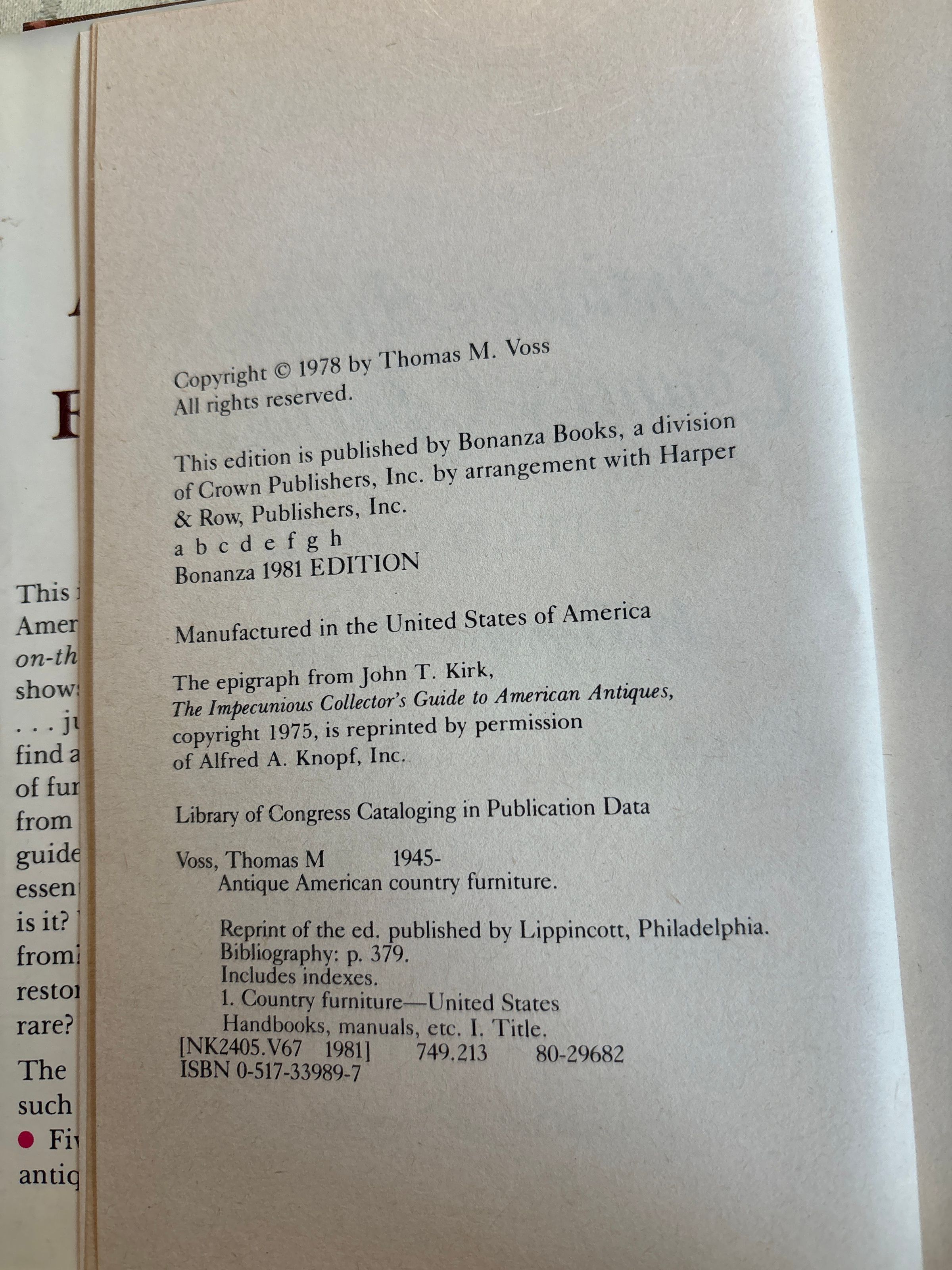 Antique American Country Furniture A Field GuideEntry/Object ID
