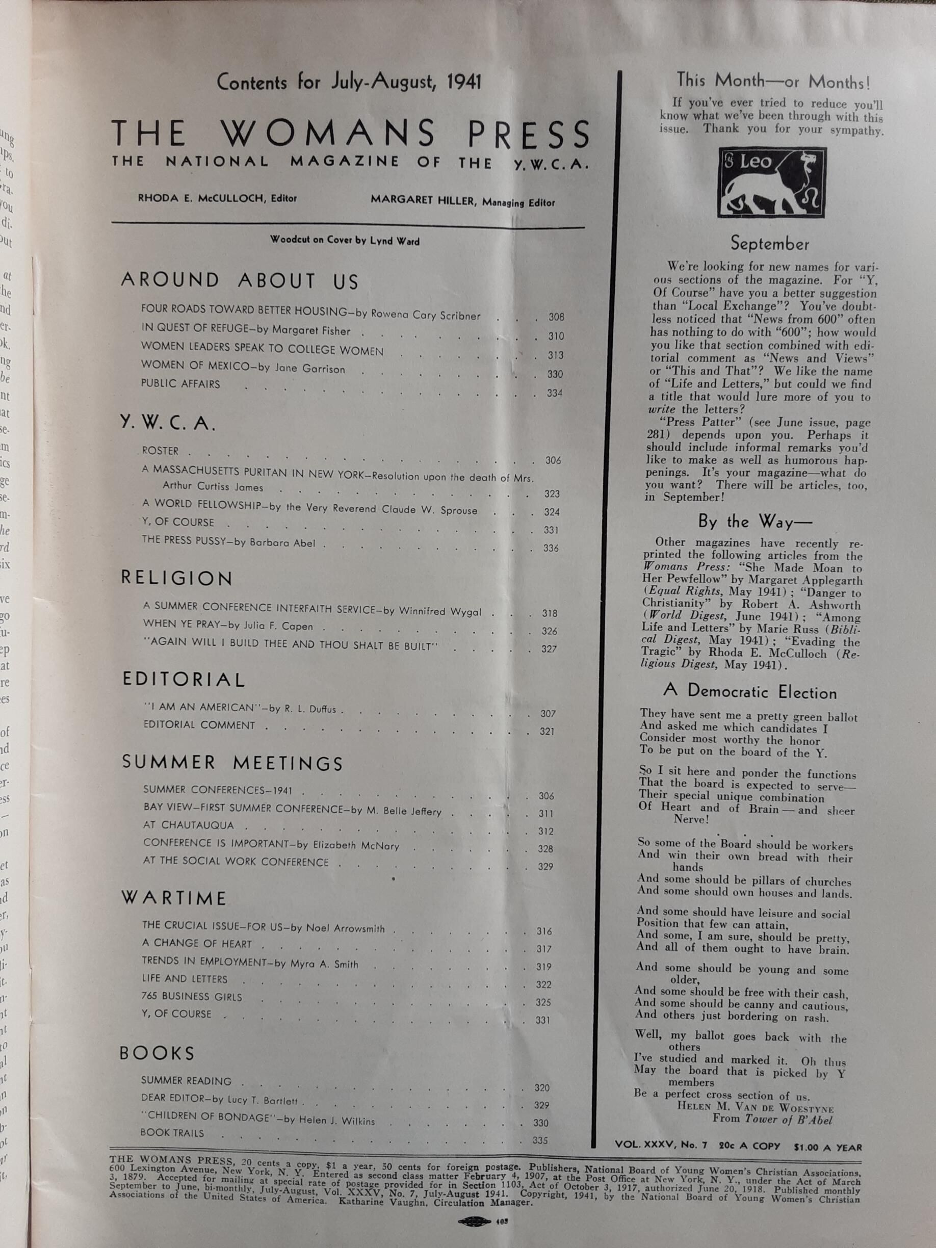 The Womans Press [July-August 1941]Entry/Object ID