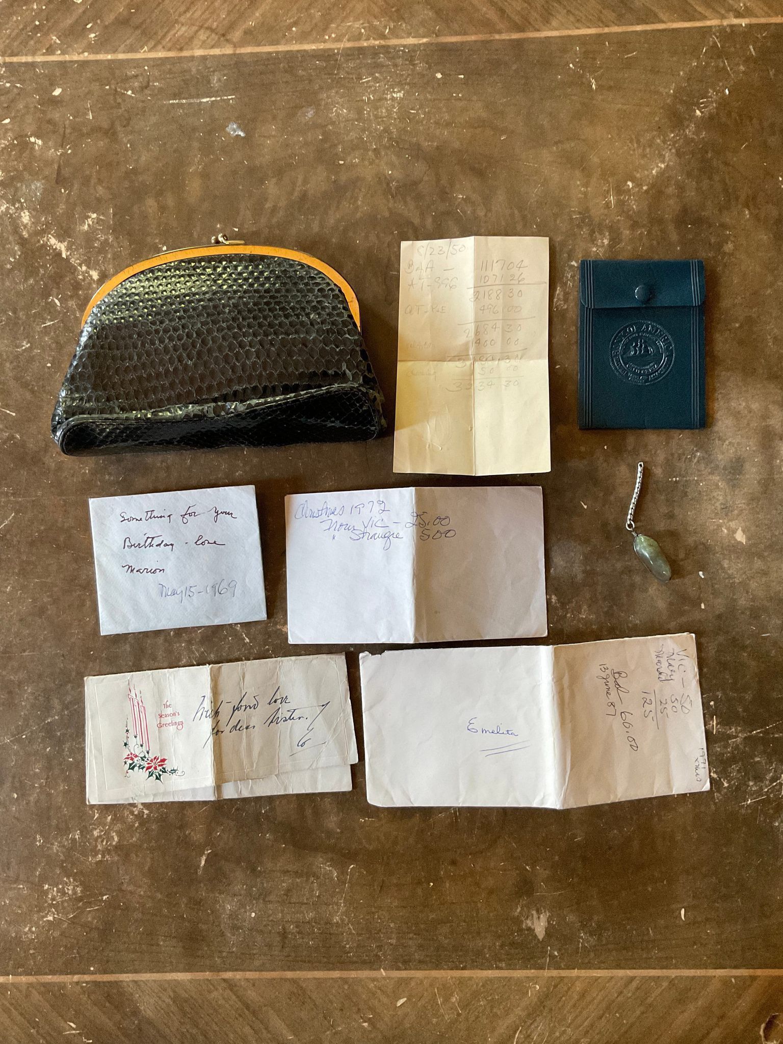 A birthday envelope for Emma Cohen Bray. The envelop is empty, but there is a message written on it: “Something for your birthday - Love Marion May 15 - 1969”. Envelope was amongst several notes found in a purse.Collection