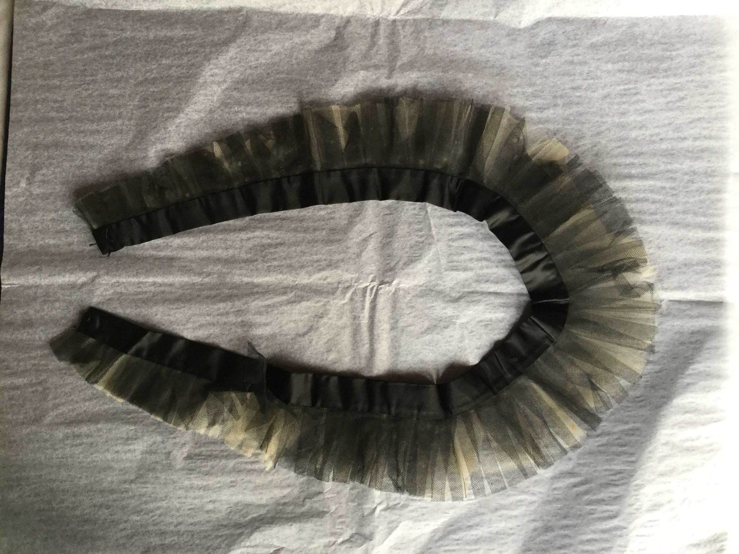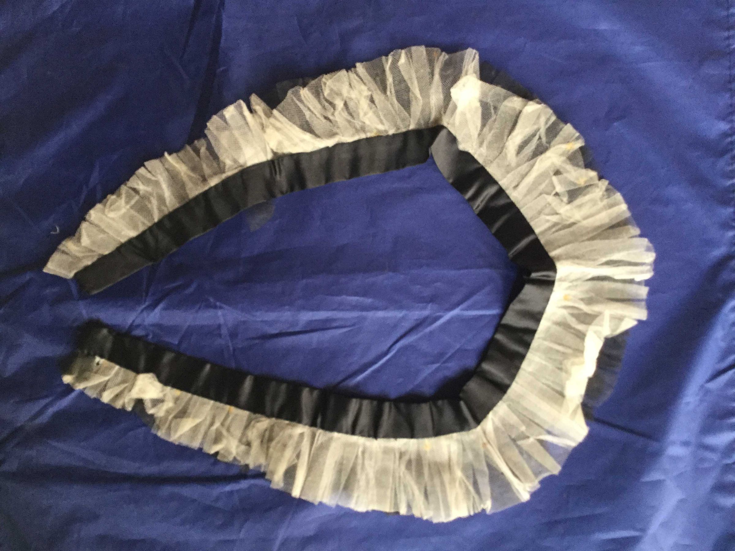 Black satin with ivory and black tulle detachable and reversible shawl collar