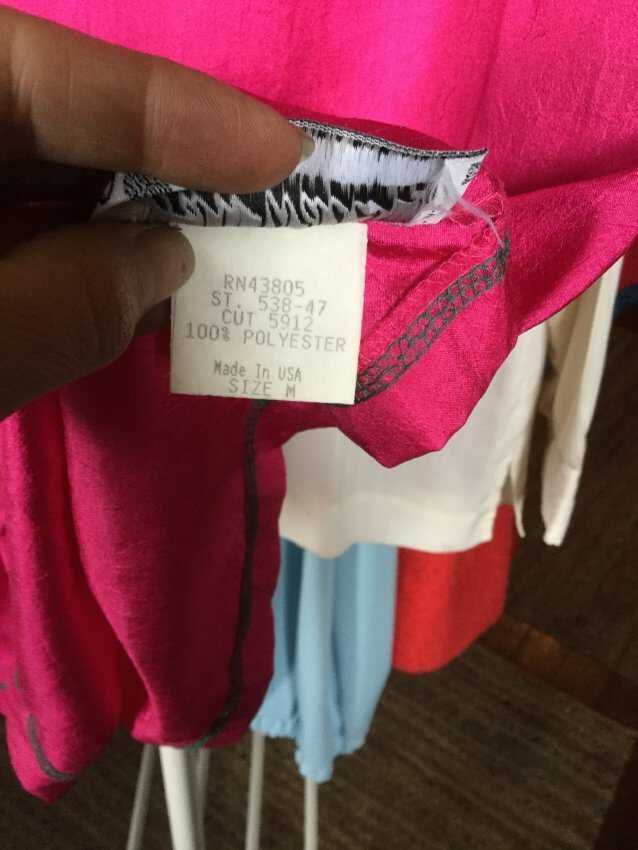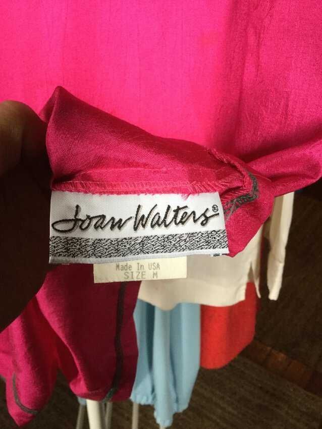 blouse, pink with green sleeves,100% poly Joan Walters