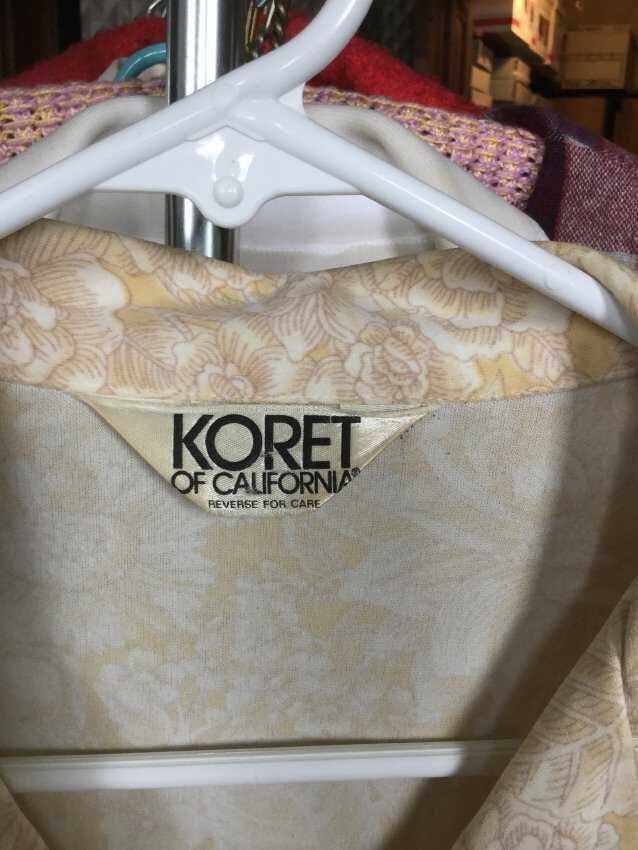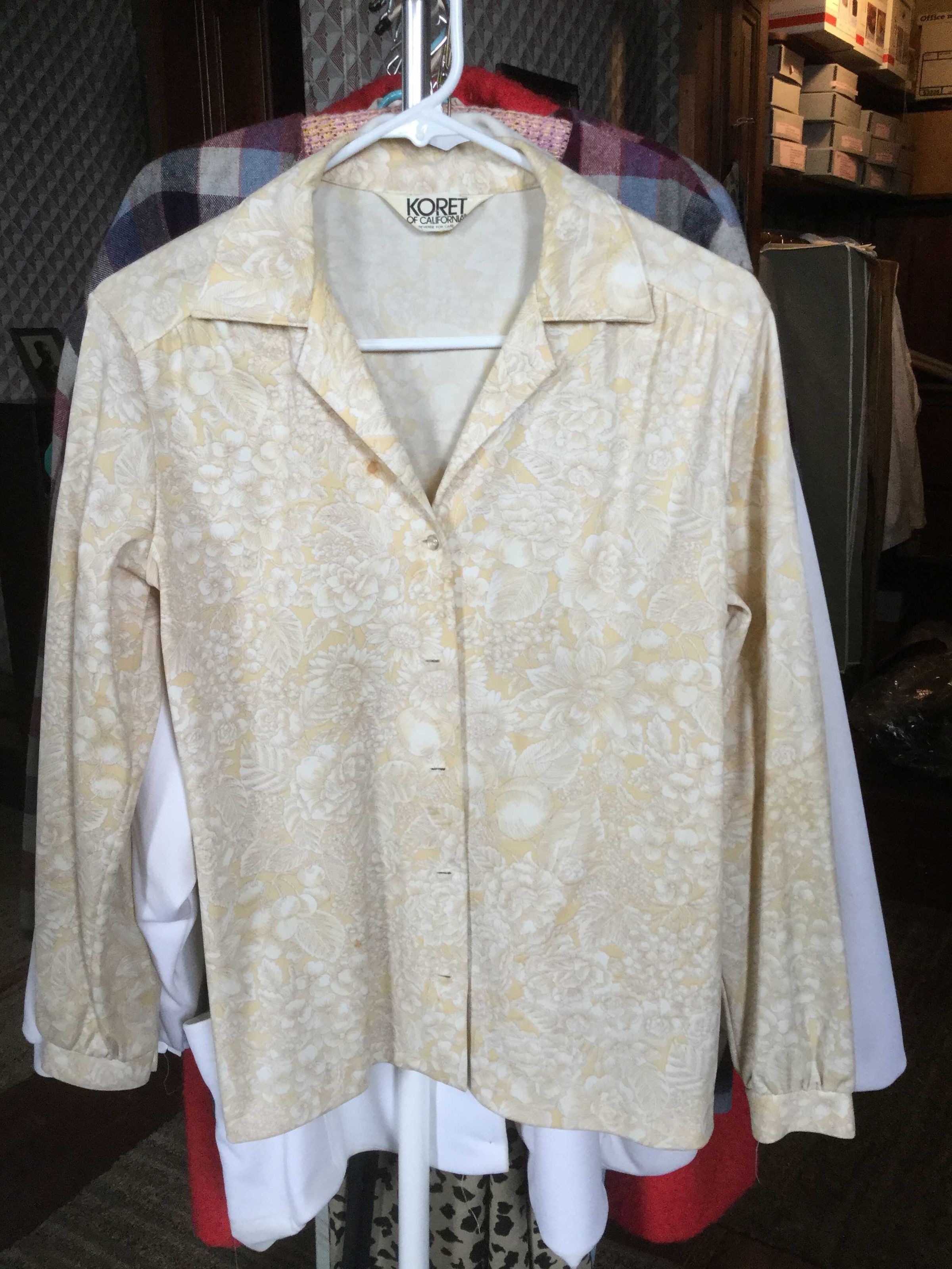 blouse, white tan yellow design, Koret