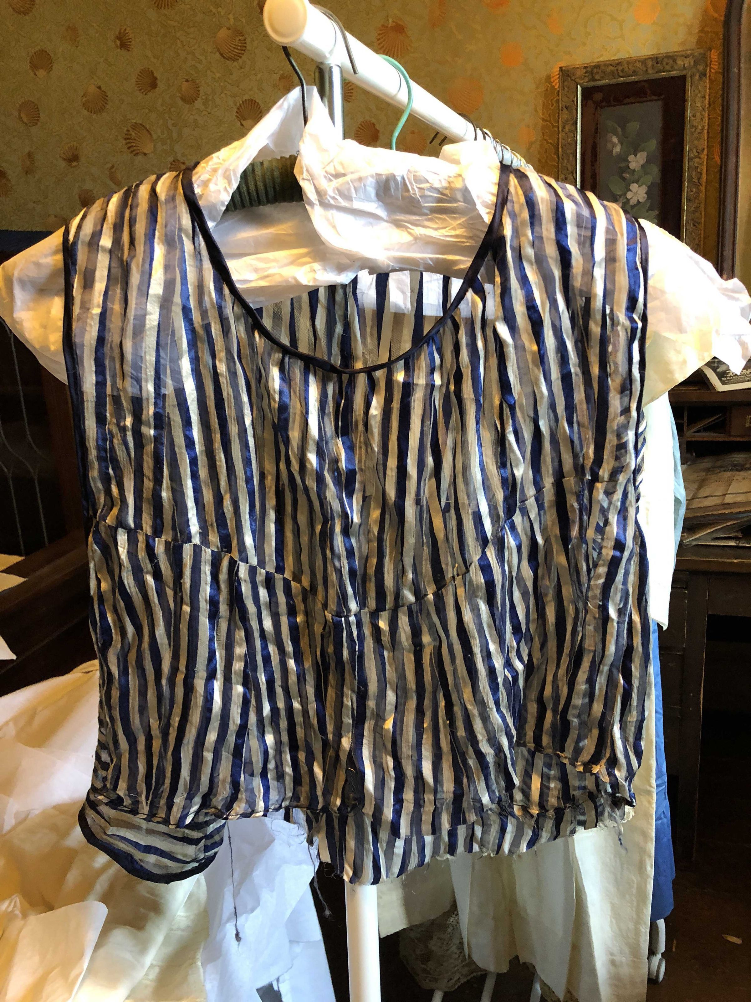 Blouse top silk blue white stripes