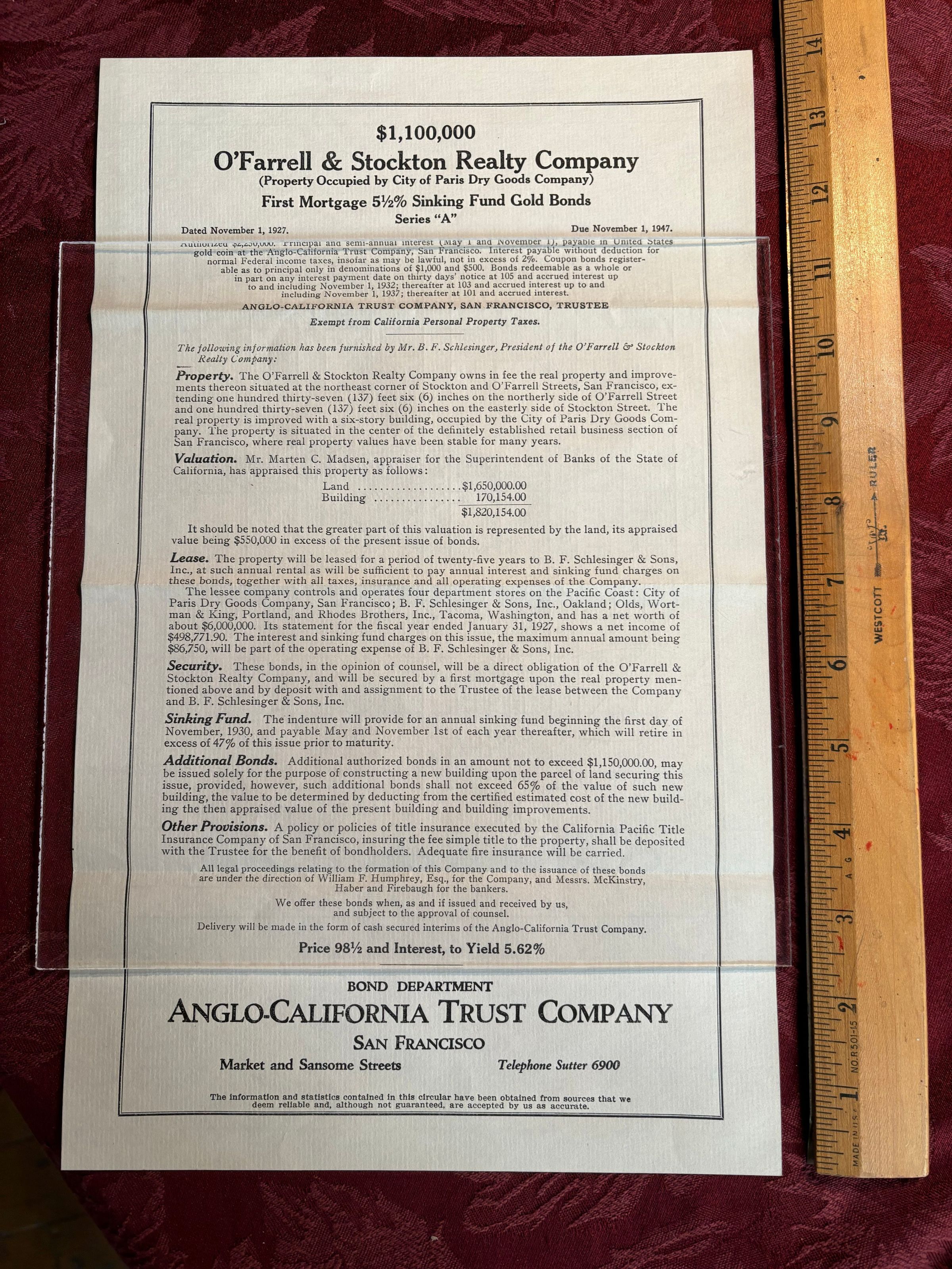 Bond Information from the Anglo-California Trust Co.Entry/Object ID