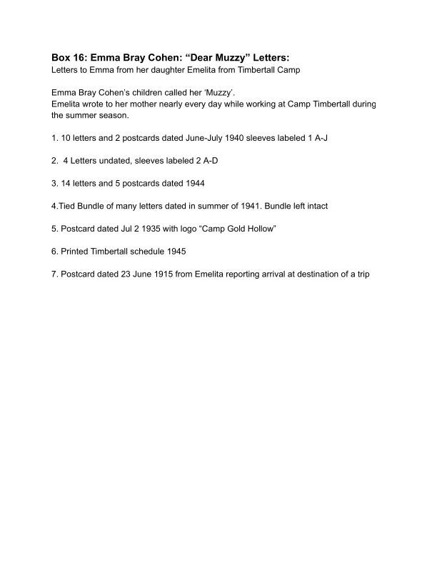 Box 15 Emelita letters to her mother Emma Cohen whom she addressed as 'Dear Muzzy'