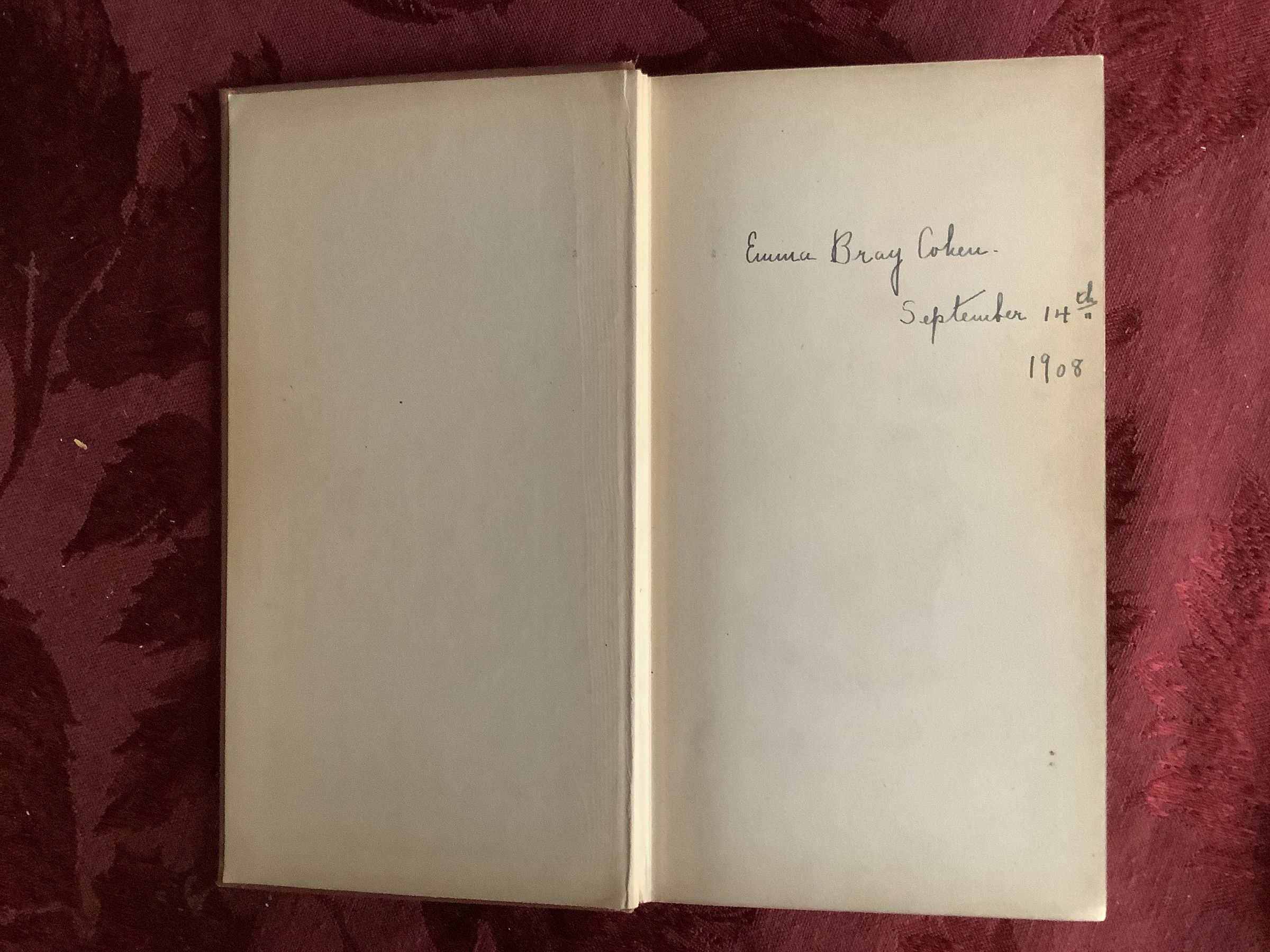 Emma Bray Cohen. September 14th 1908
