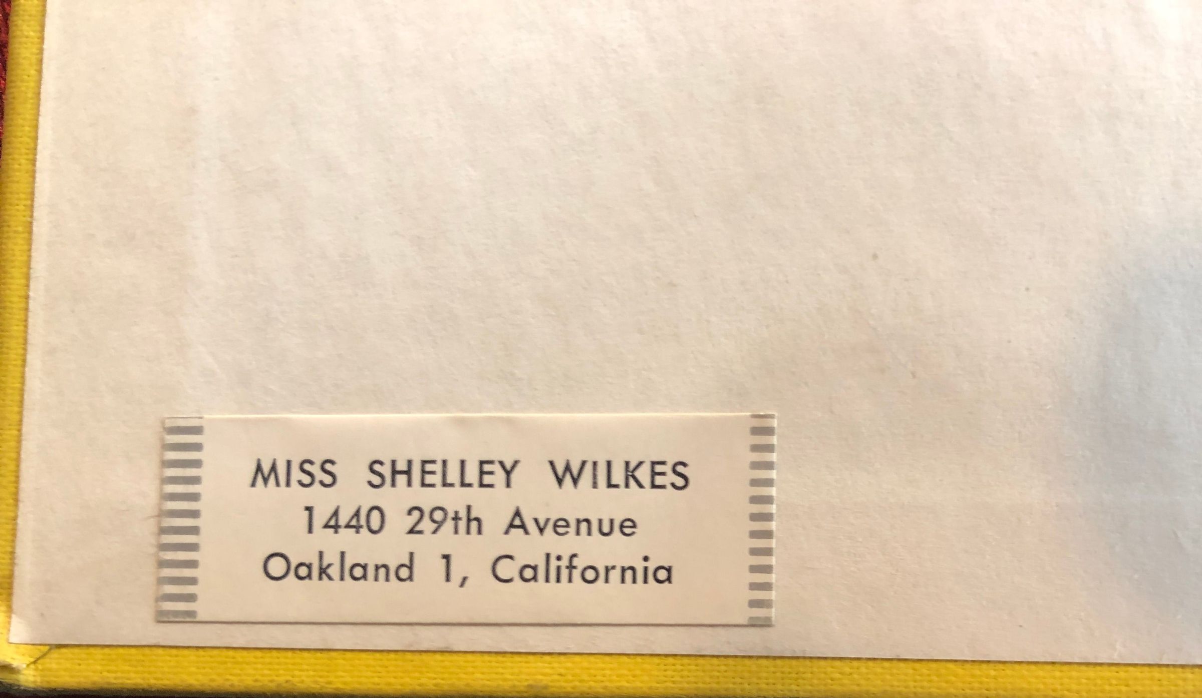 MISS SHELLEY WILKES 1440 29th Avenue Oakland 1, California