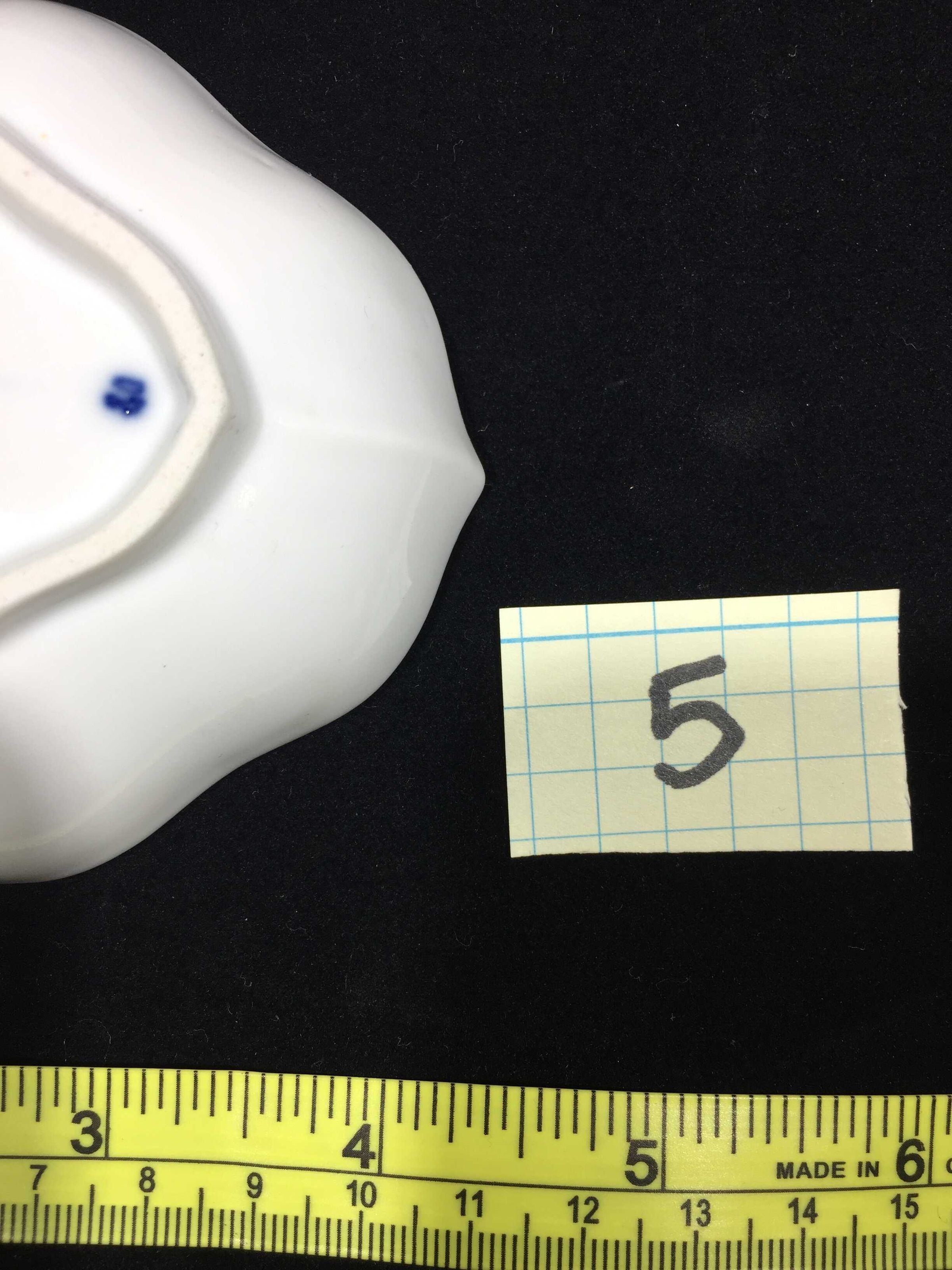 White with blue floral design