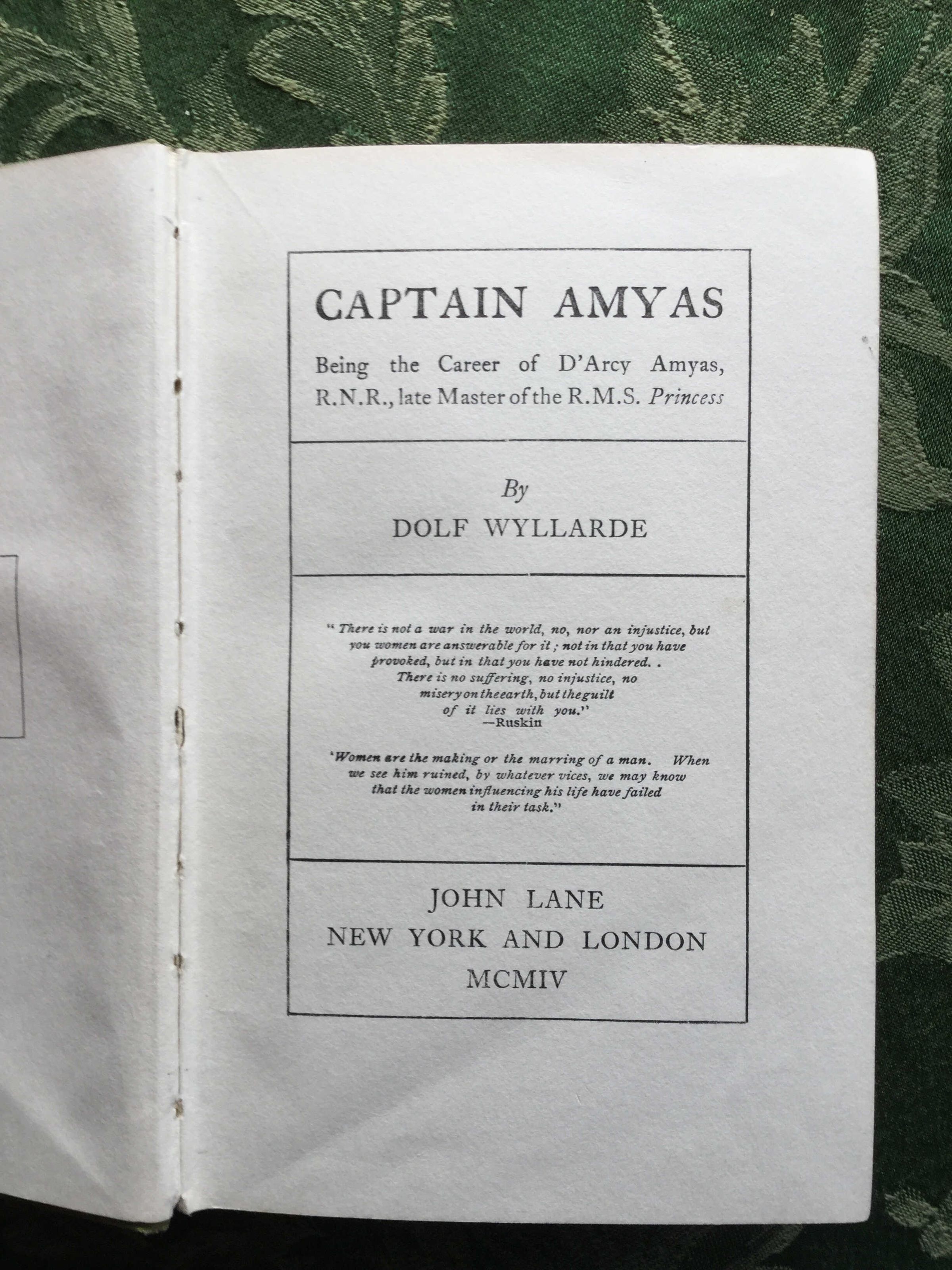 The book follows the life of D'Arcy Amyas, a captain of the Royal Mail Steamship Princess, as he navigates the treacherous waters of the sea and the even more dangerous waters of love. -AmazonCreate Date