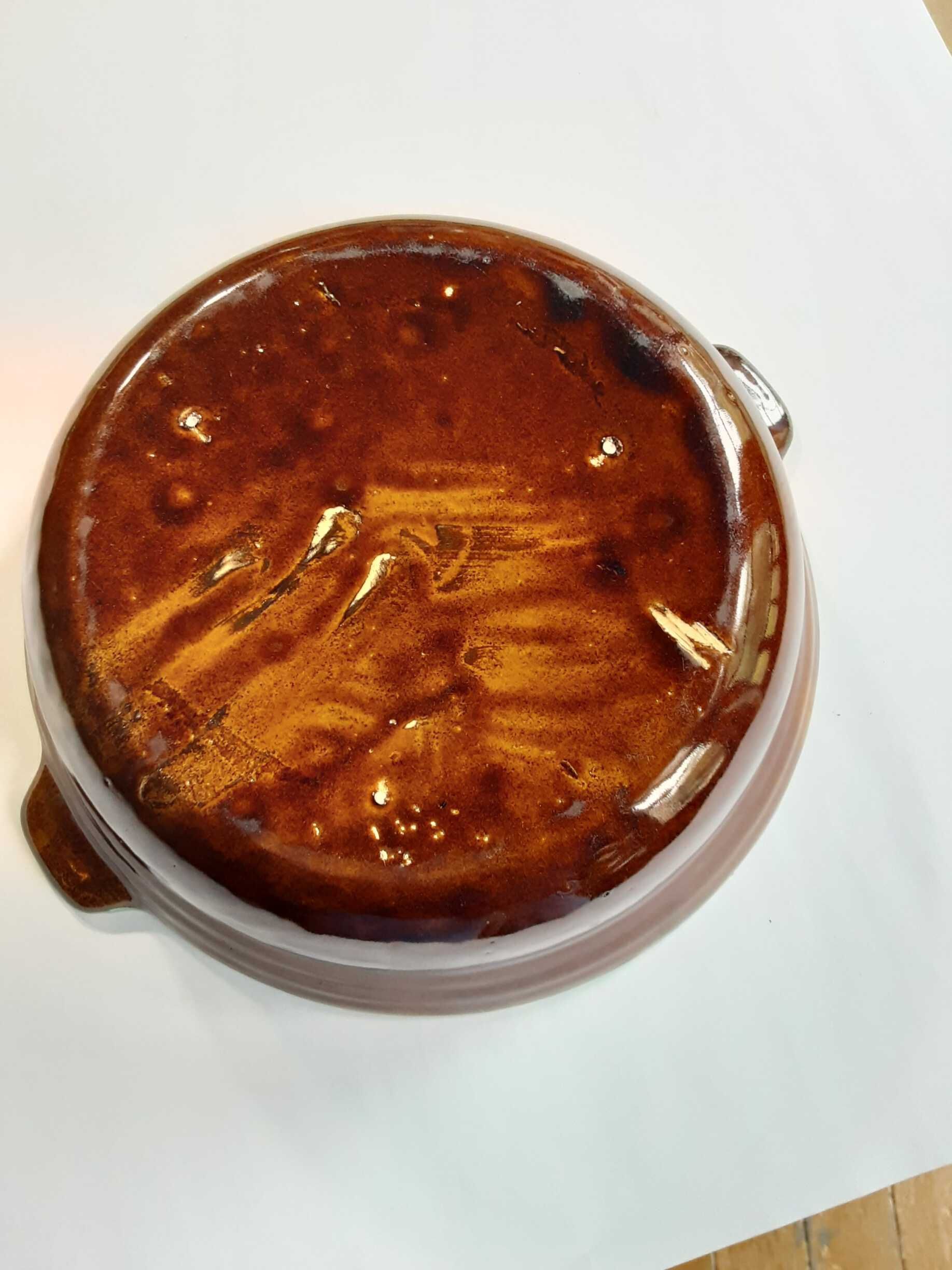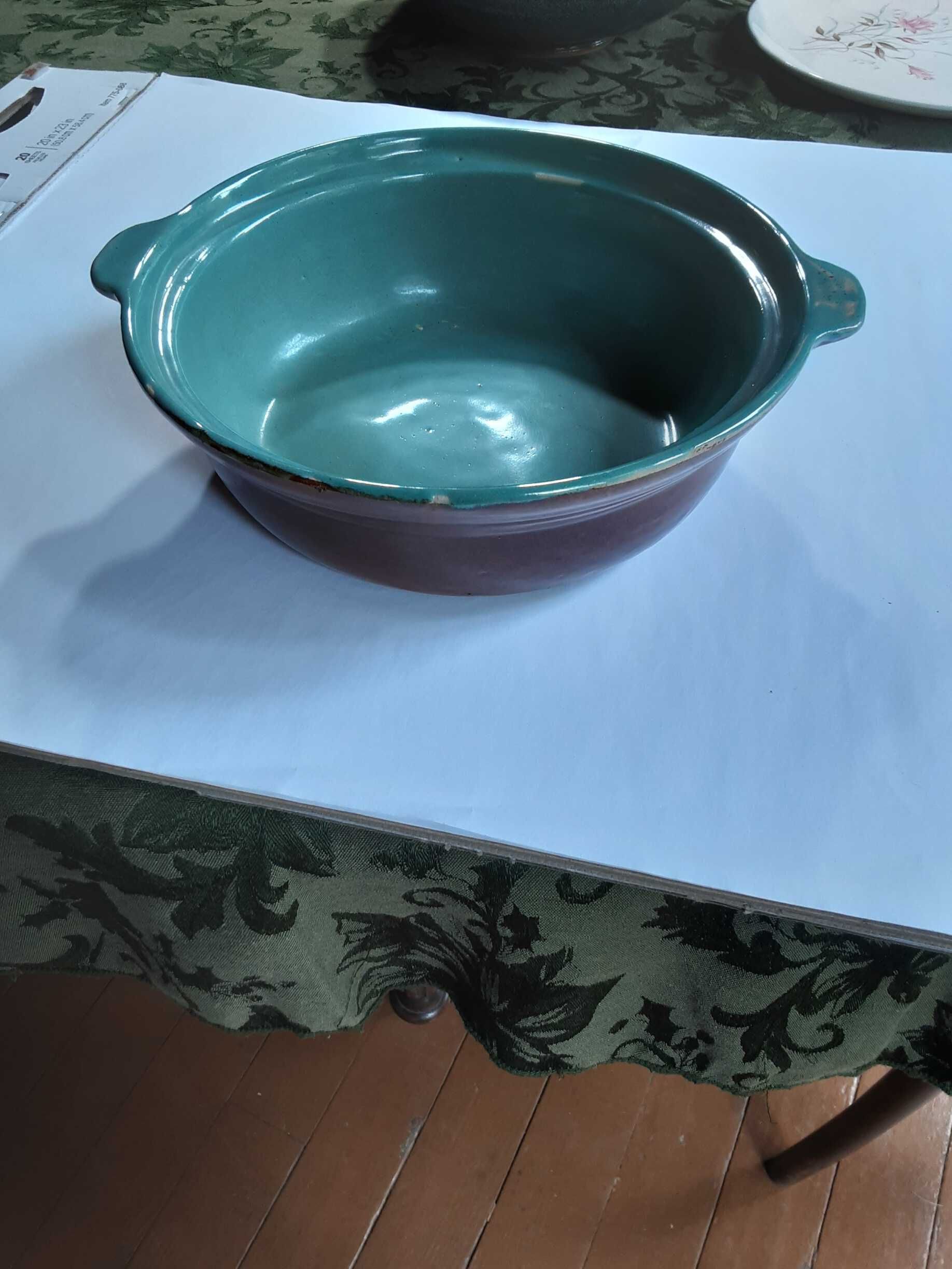 Casserole dish - aqua interior/brown exterior