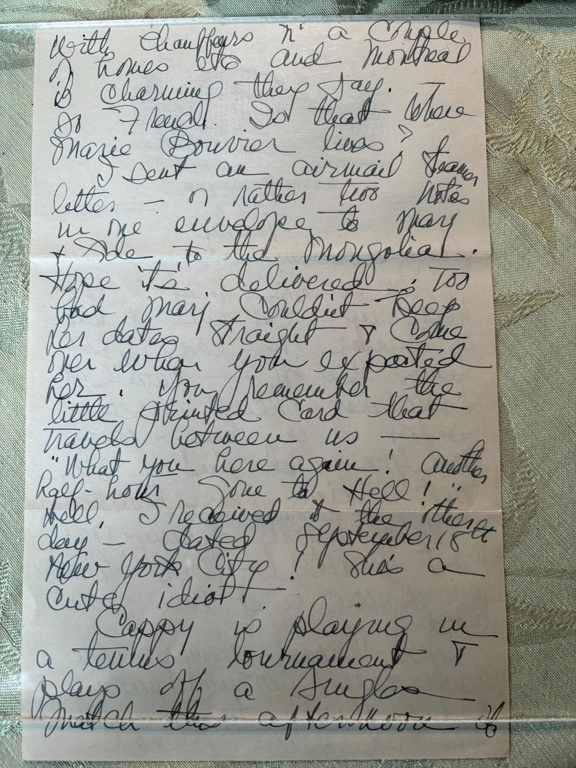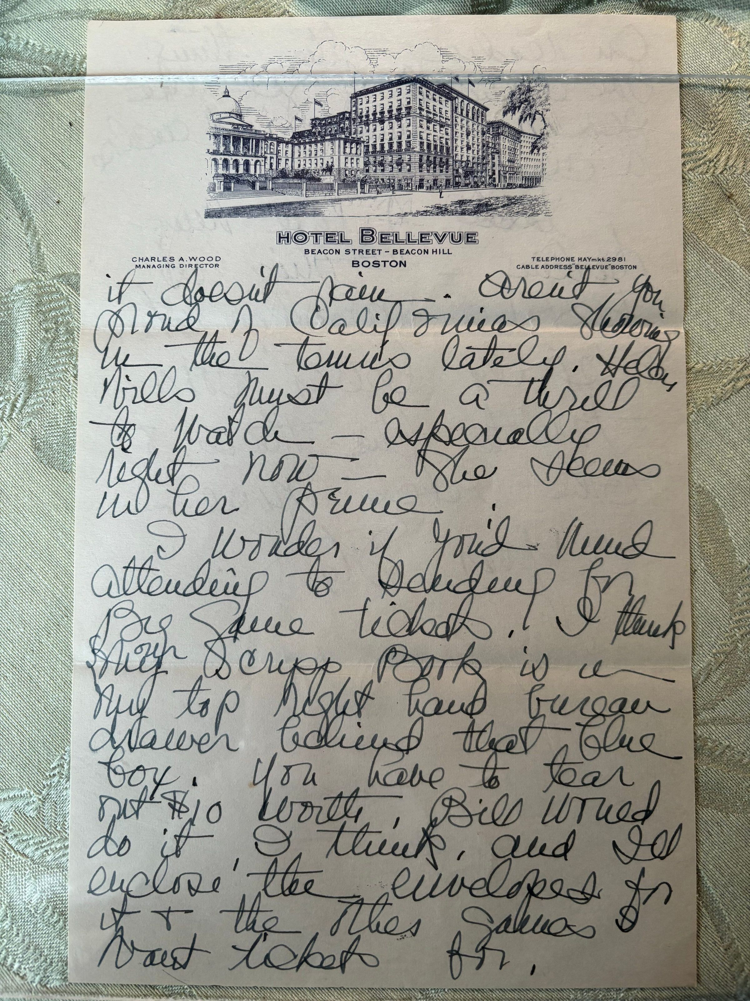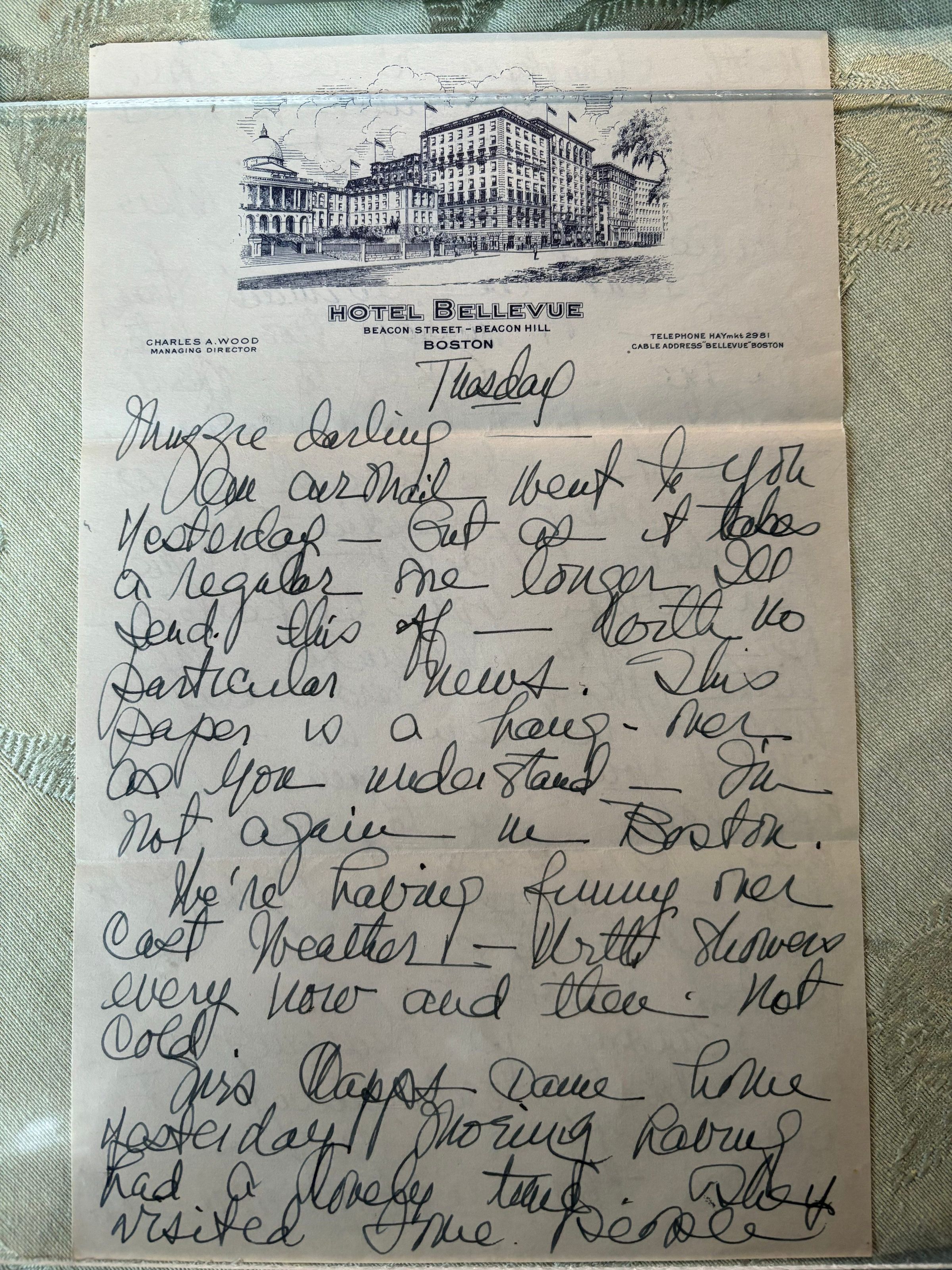 Emelita uses the paper from Hotel Bellevue but says she is just using them, but isn't in Boston at the moment. She tells Emma of the rainy weather in Connecticut and talks about buying tickets.Create Date