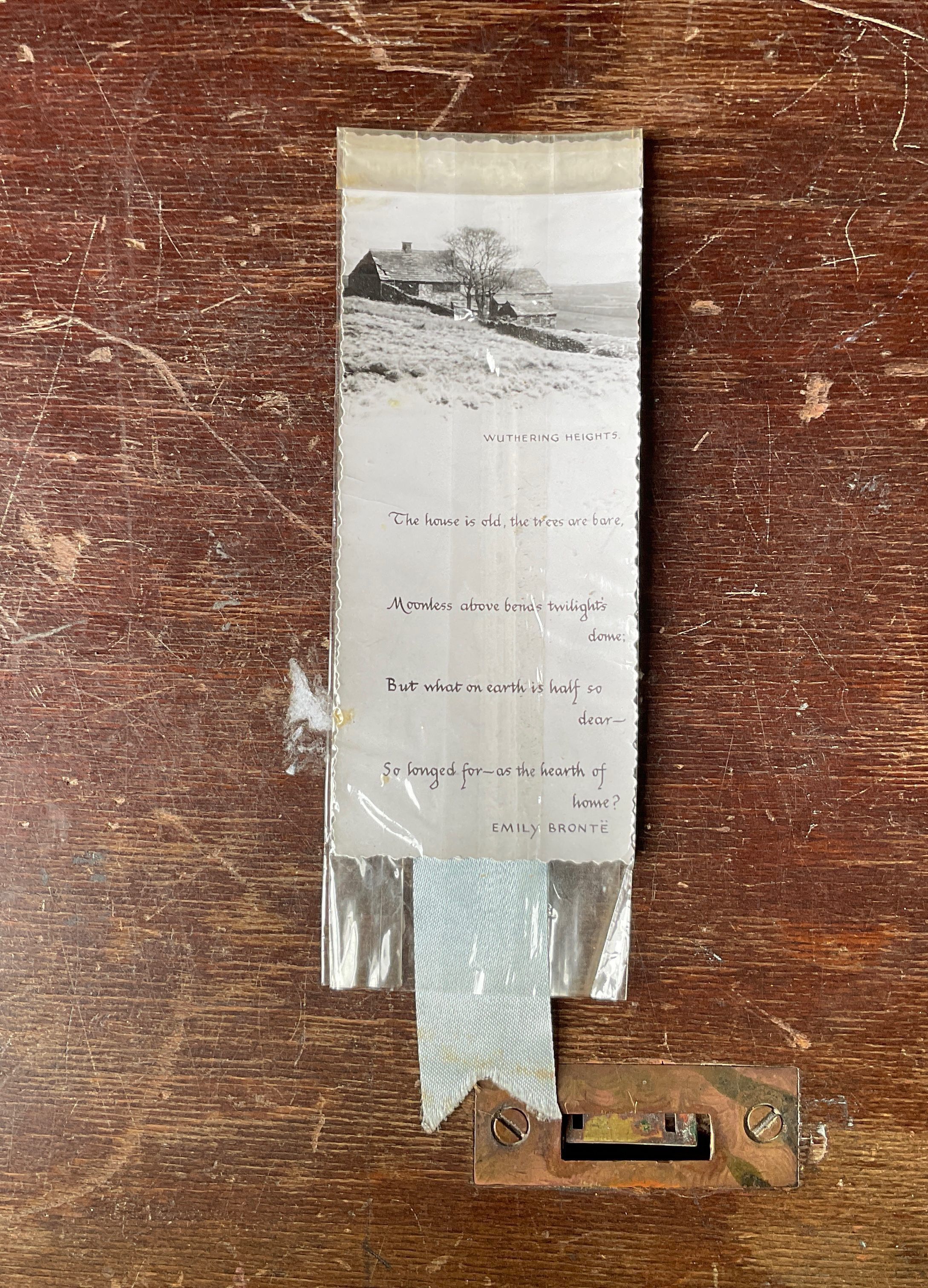 A bookmark with a quote from Wuthering Heights by Emily Brontë