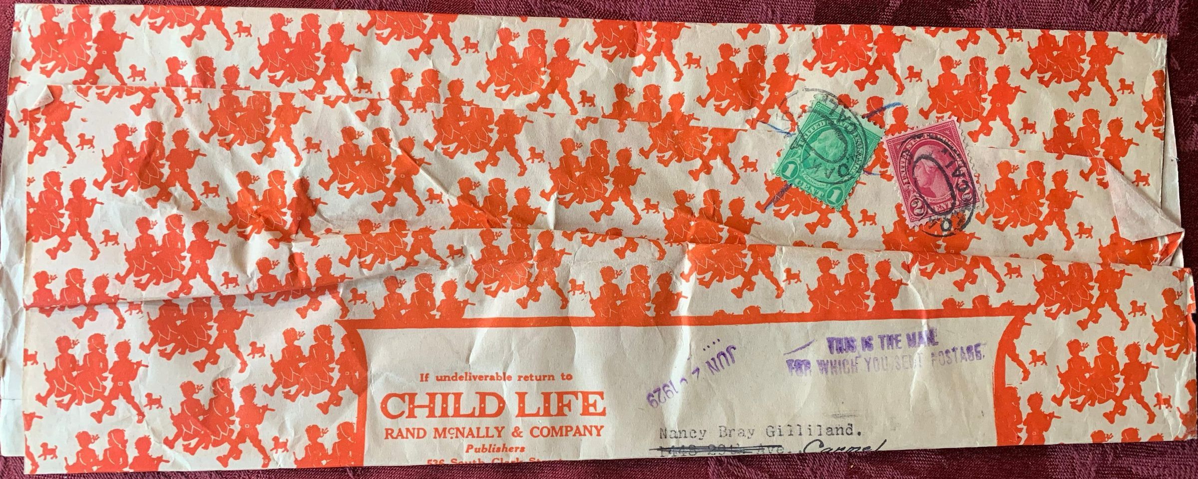Child Life Magazine Envelope 11 with orange children design, "Dec-29."Inscription/Signature/Marks