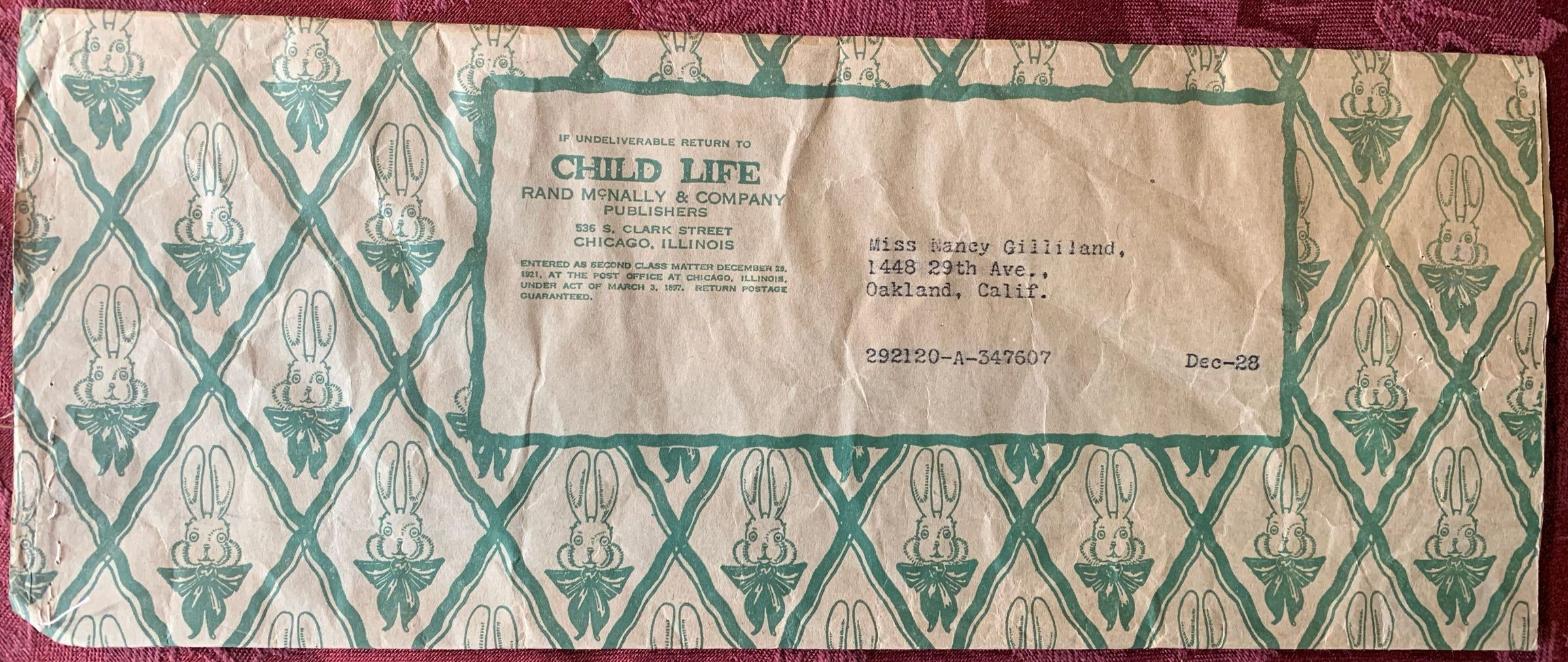 Child Life Magazine Envelope 5. Rabbit design, "Dec-28."Inscription/Signature/Marks