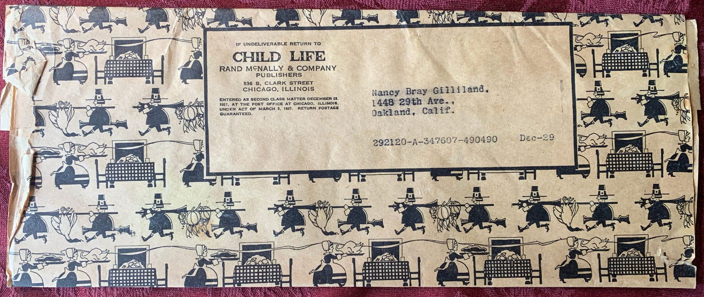 Child Life Magazine Envelope 7 with Thanksgiving design, "Dec-29."Inscription/Signature/Marks