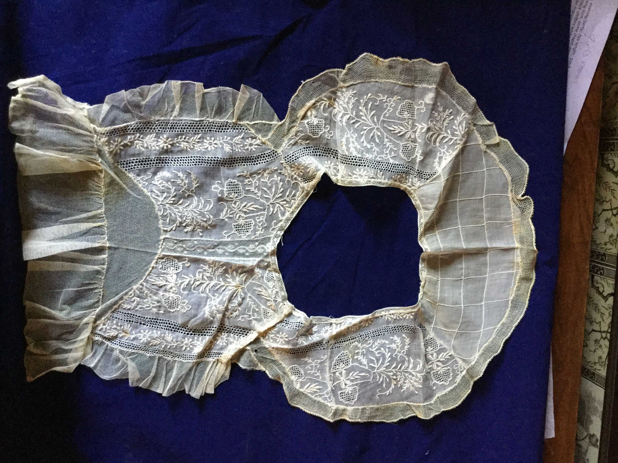 Collar yoke ivory embroidered voile cutwork and net