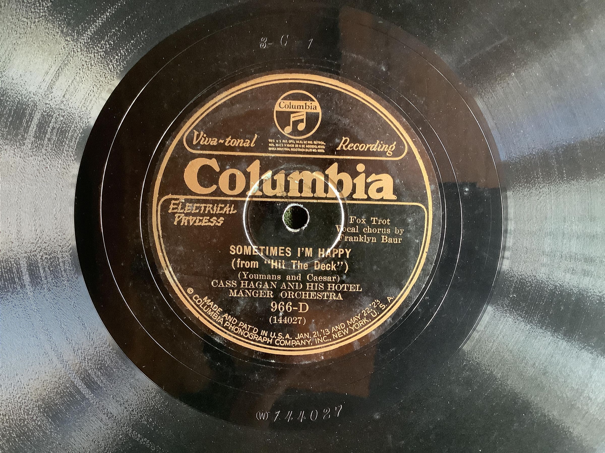 Side B: Sometimes I'm Happy, from "Hit the Deck". Youmans and Caesar. Fox Trot, Vocal chorus by Franklyn Baur.Create Date
