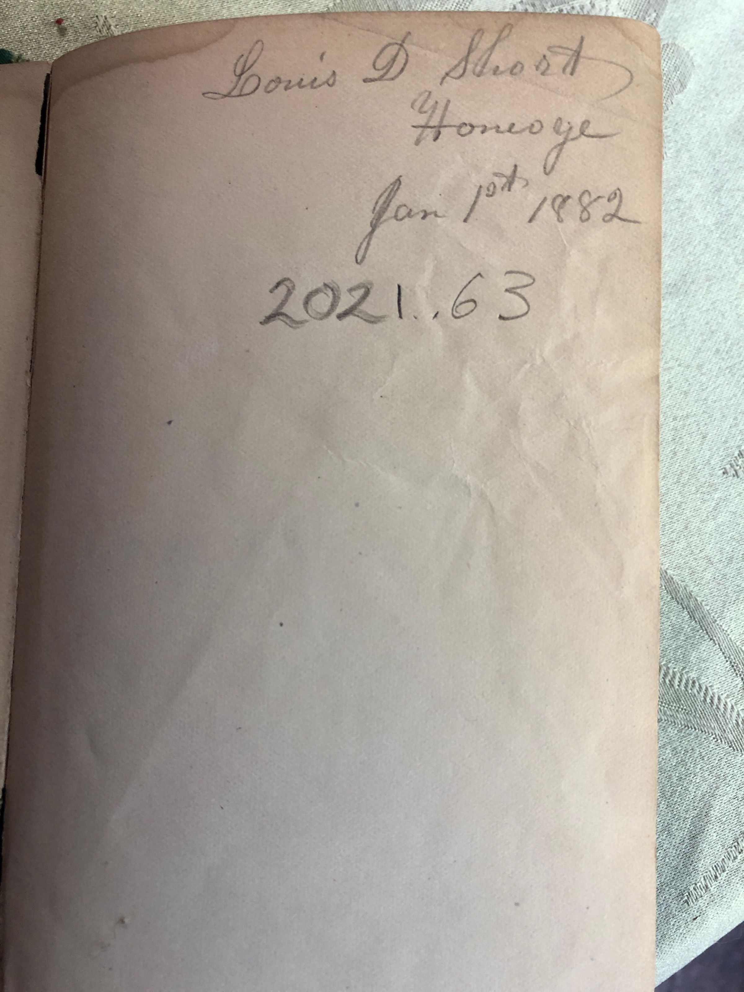 Louis D. Short Honeoge [?] Jan 1st 1882