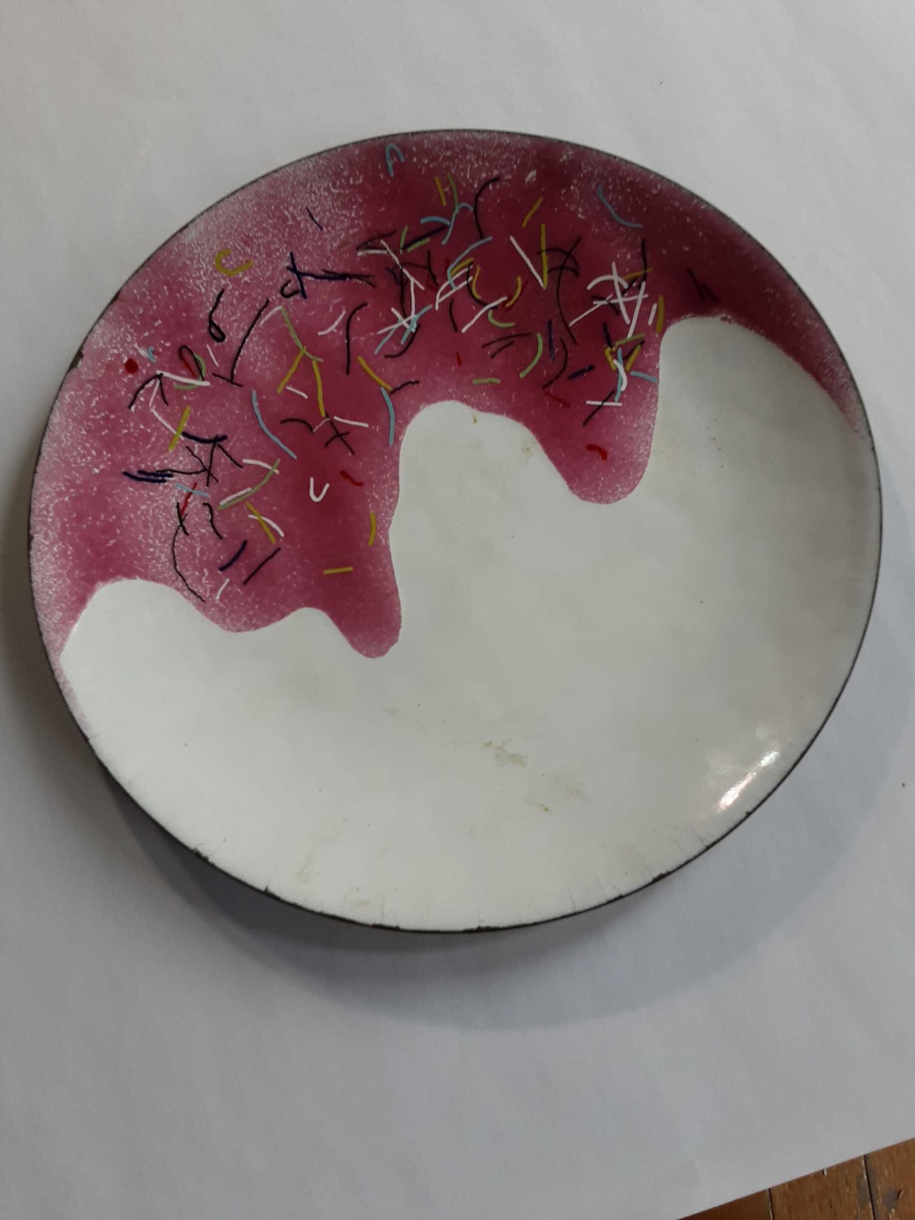 Copper plate- enamel glaze - pink and white
