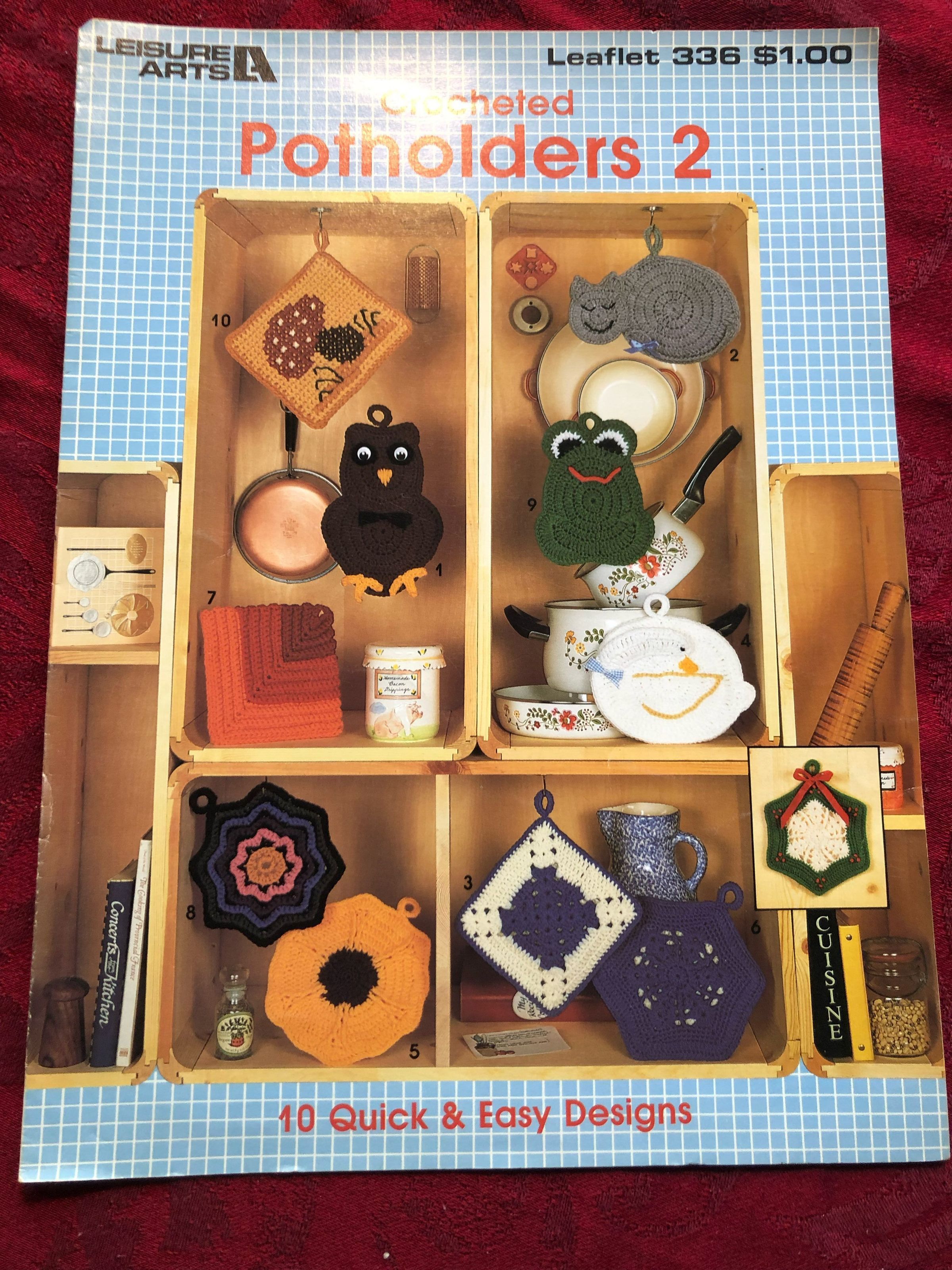 Craft book with instructions on making crocheted pot holders