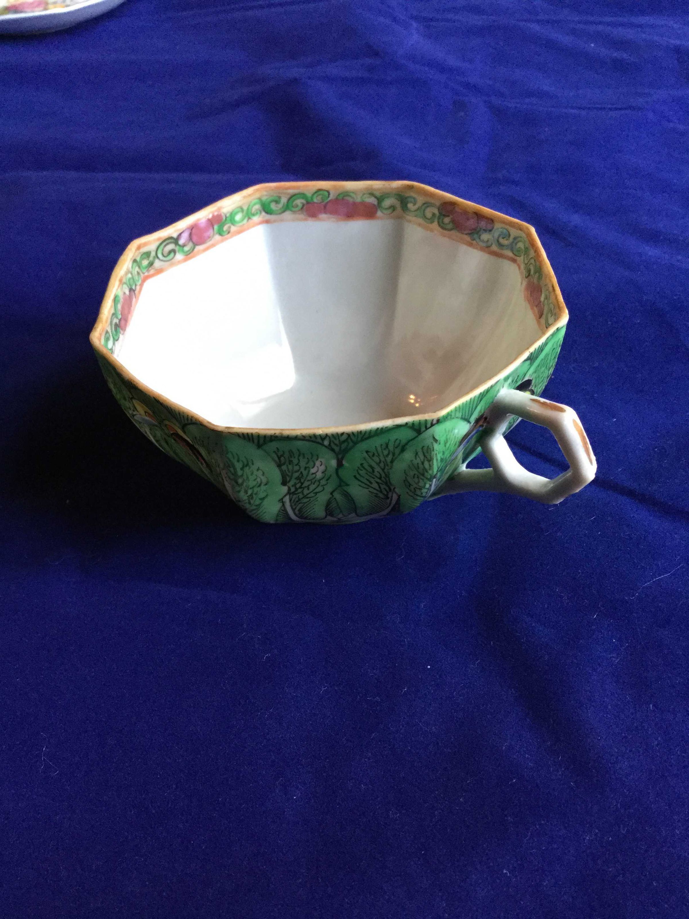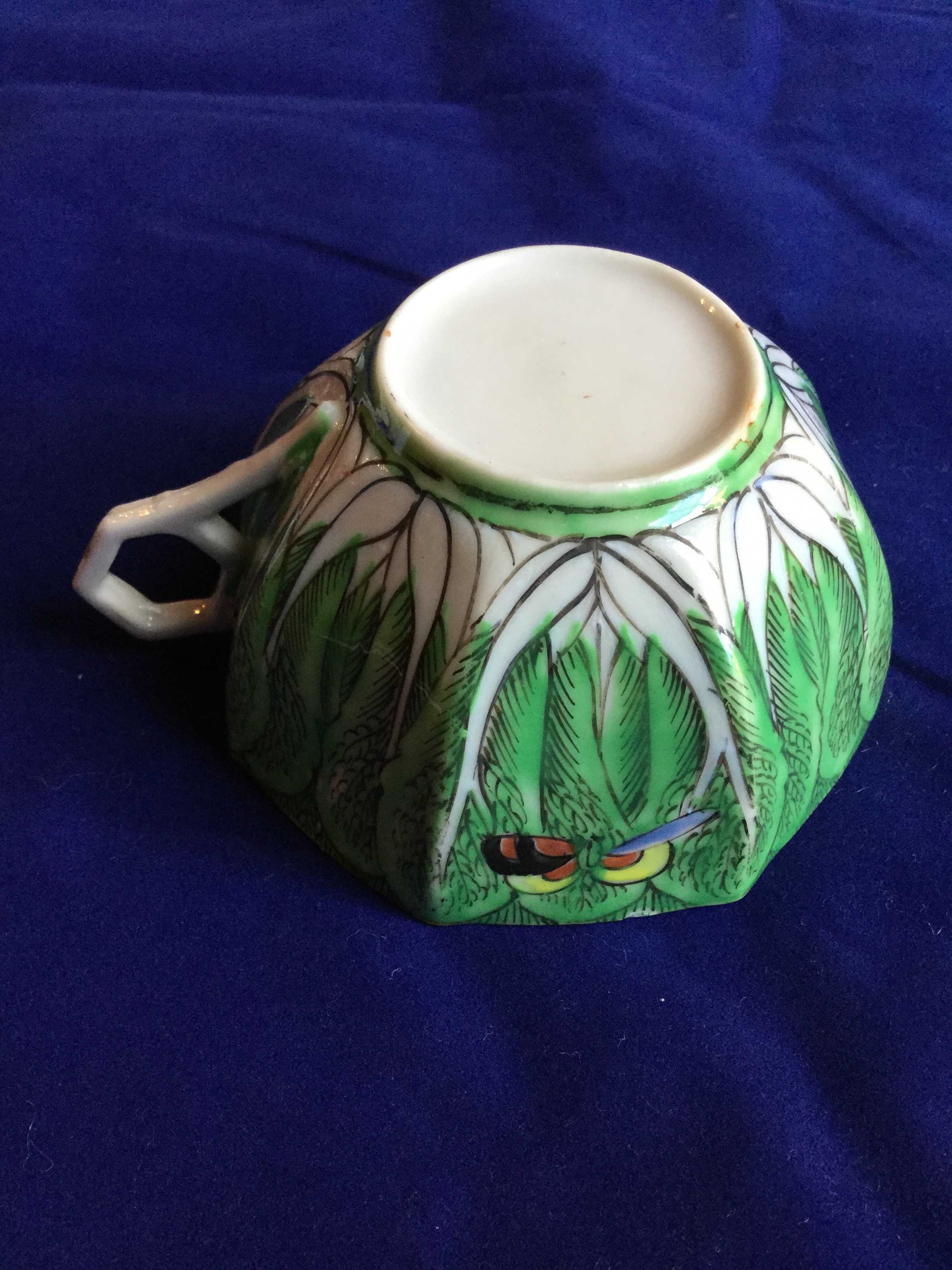Cup and Saucer, Green bok choy design with butterflies