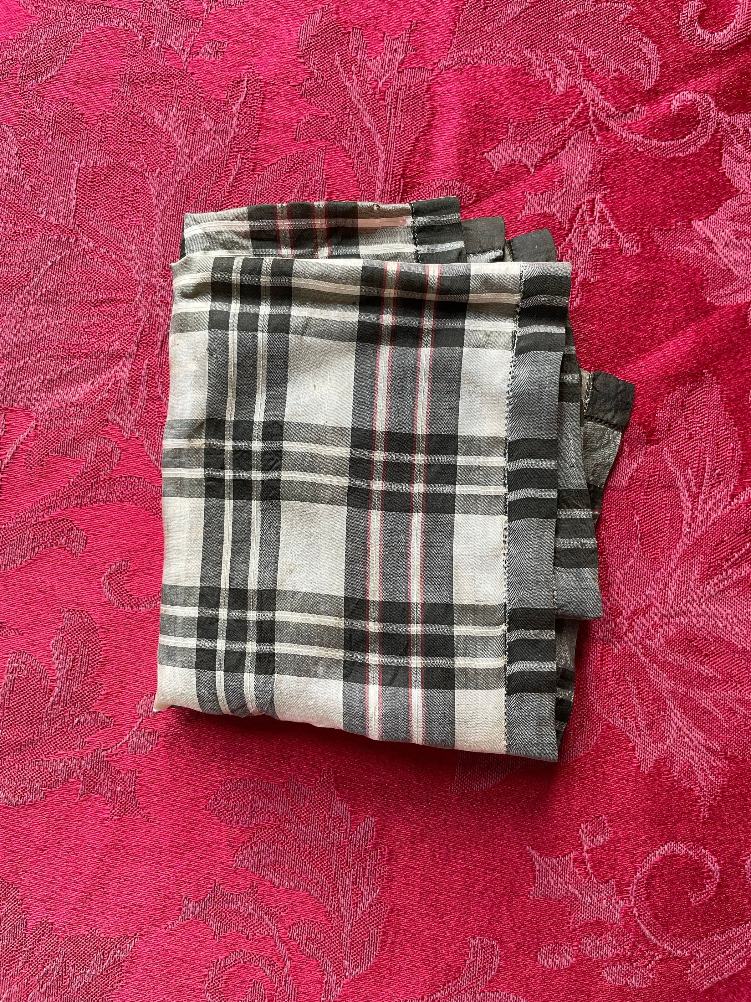 A scarf with some form of tartan or checkered pattern in black, white, and red.