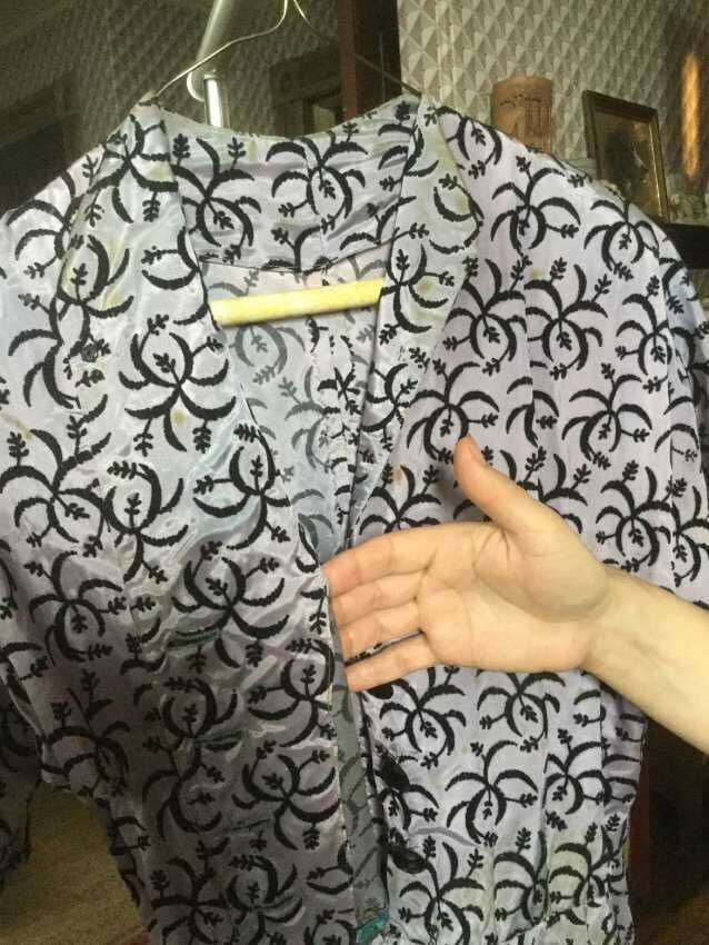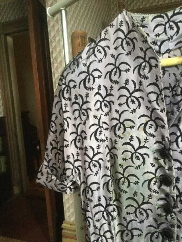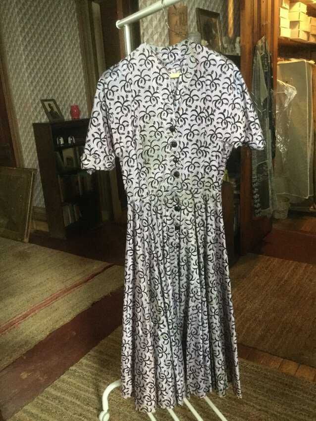 Dress, purple, black flocking,hand made, raglan sleeves