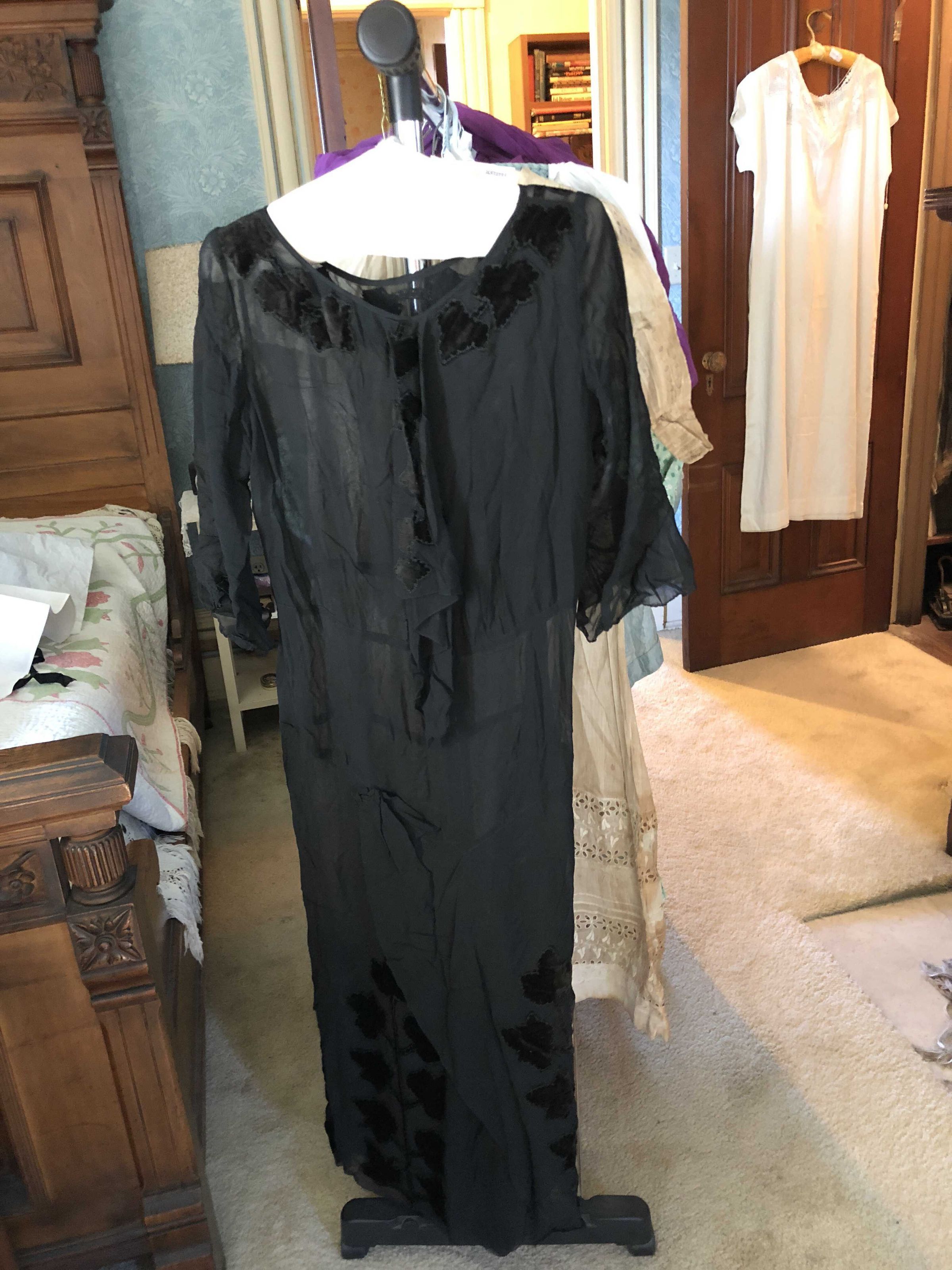 Dress black sheer , neck velvet applique