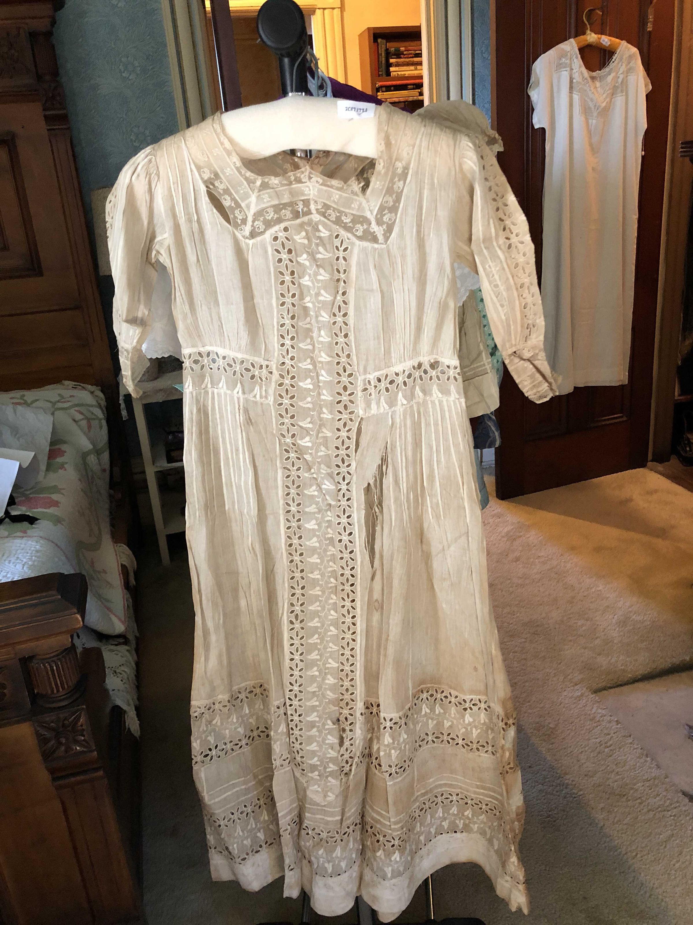 Dress, cotton eyelet, lace trim