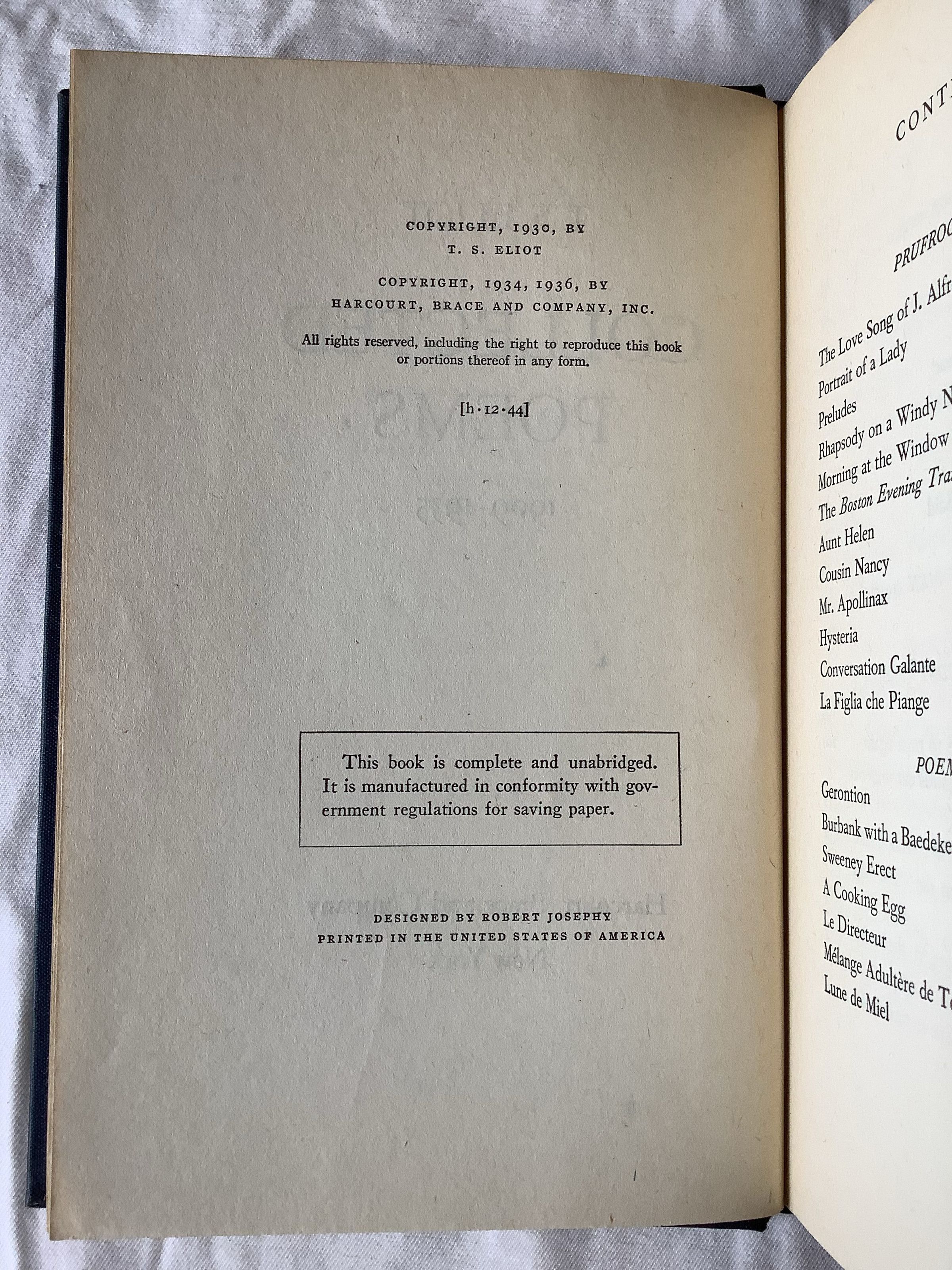 Collection of the entire poetry work of T.S. Eliot up until 1935.
