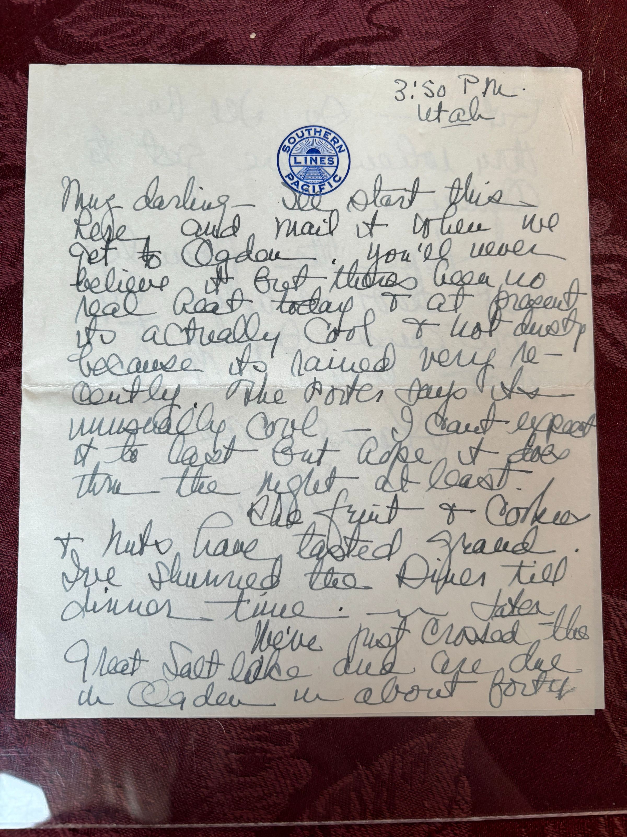 This is from Emelita when her train was traveling through Utah, she updates Emma on her train trip so far.