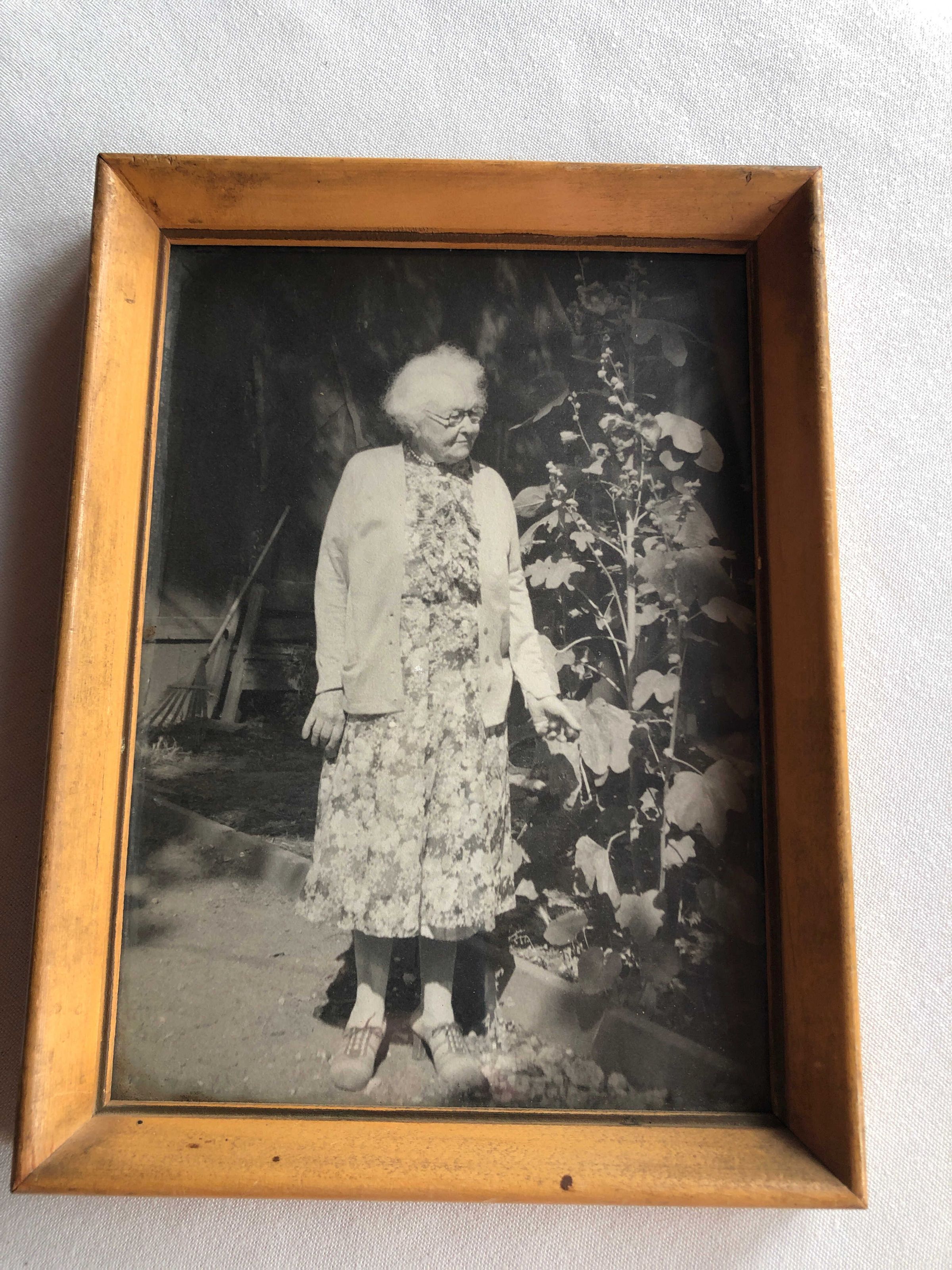 Photo of Emma Bray Cohen, black and white, set in a wooden frame