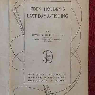 Eben Holden's Last Day A Fishing is a novel written by Irving Bacheller and first published in 1907. The story revolves around Eben Holden, a retired farmer who lives in the countryside of upstate New York. Eben is an old man who is fond of fishing and spends most of his time by the river. The novel describes the last day of Eben's life, which he spends fishing with his grandson, Billy. As they fish, Eben reminisces about his life, telling Billy stories about his youth, his family, and his experiences during the Civil War. Through these stories, the reader learns about Eben's character and the values he holds dear, such as hard work, honesty, and loyalty. The novel also explores the relationship between Eben and Billy, who is a city boy and somewhat disconnected from the rural lifestyle that Eben loves. -GoodreadsInscription/Signature/Marks