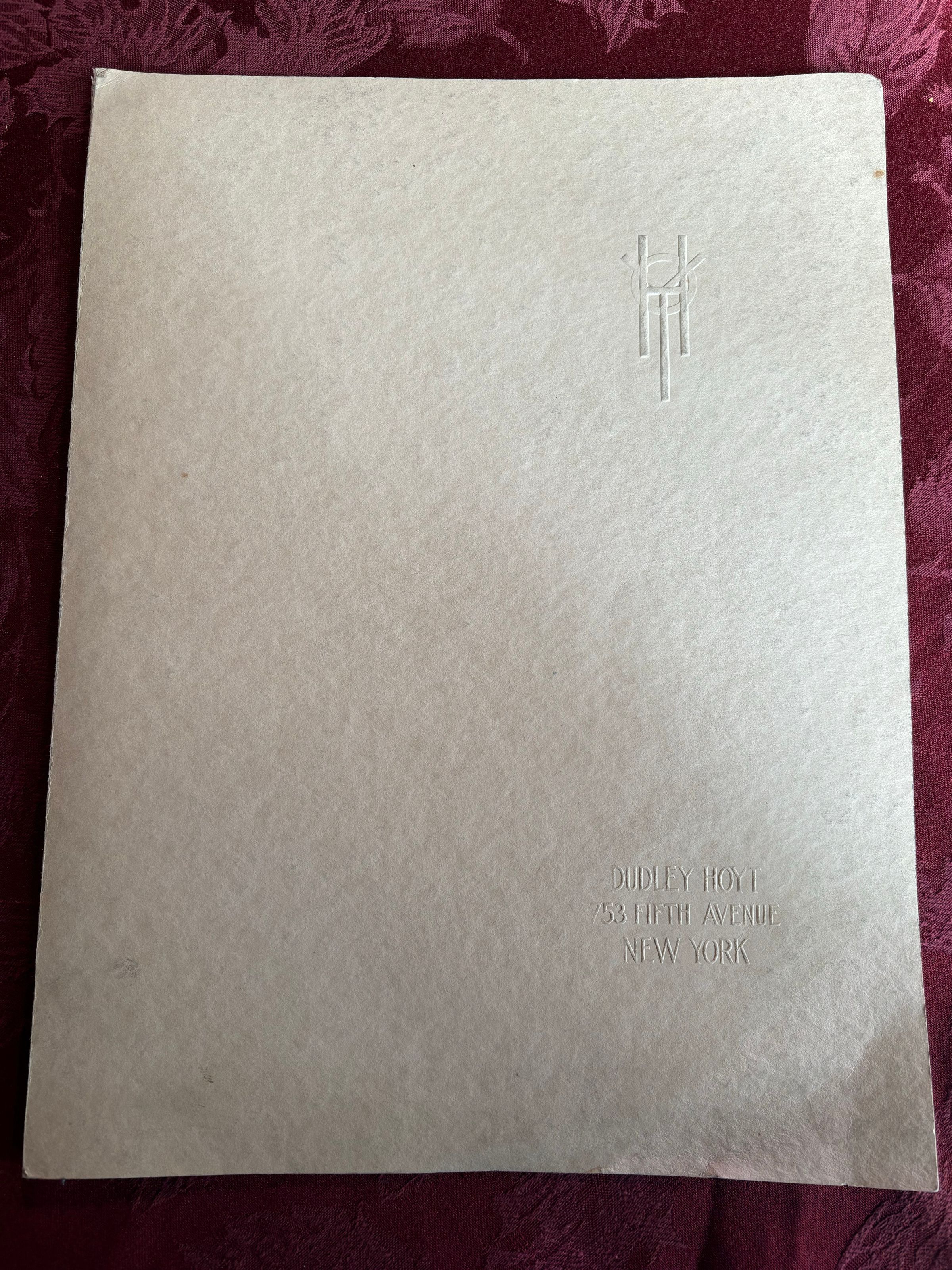 Dudley Hoyt company embossment on front of photo folder. See image for reference.Create Date