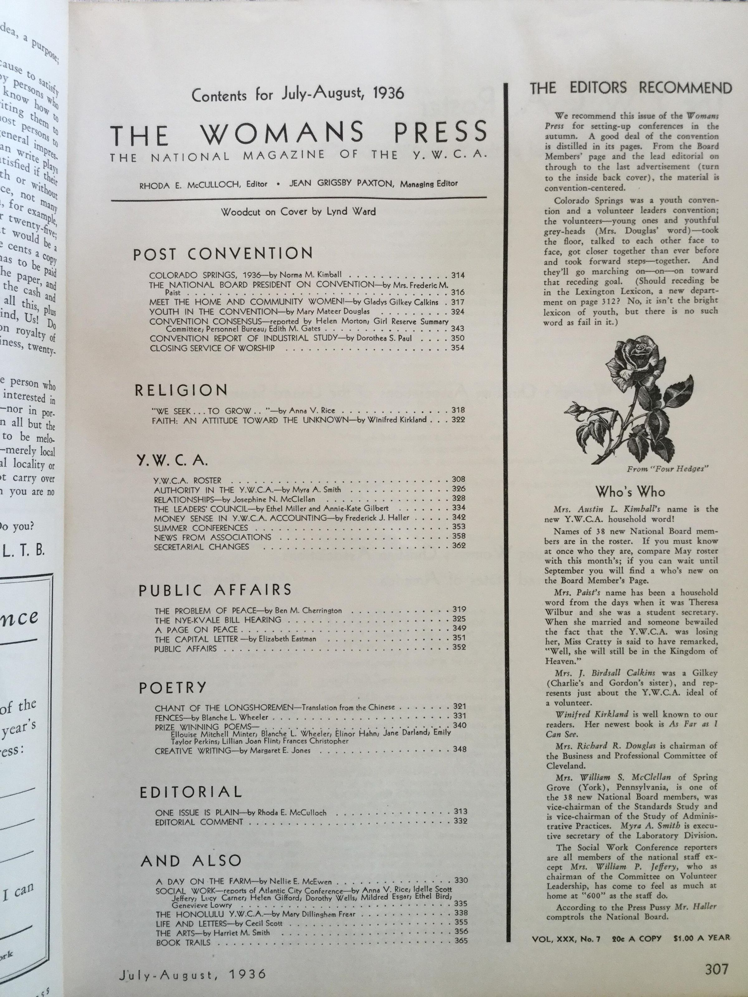 The Editors Recommend: We recommend this issue of the Womans Press for setting-up conferences in the autumn. A good deal of the convention is distilled in its pages. From the Board Members' page and the lead editorial on through to the last advertisement (turn to the inside back cover), the material is convention-centered.Create Date
