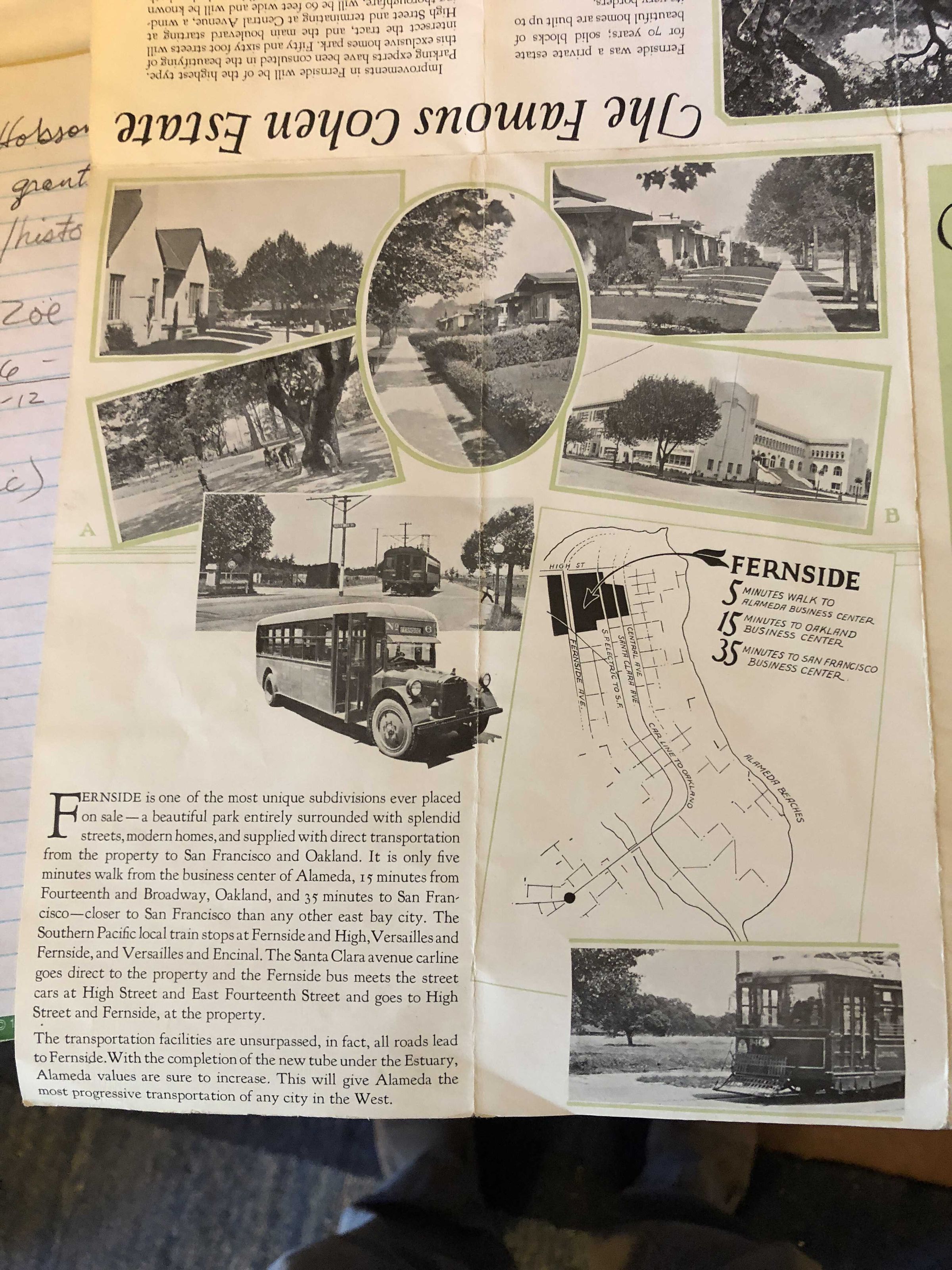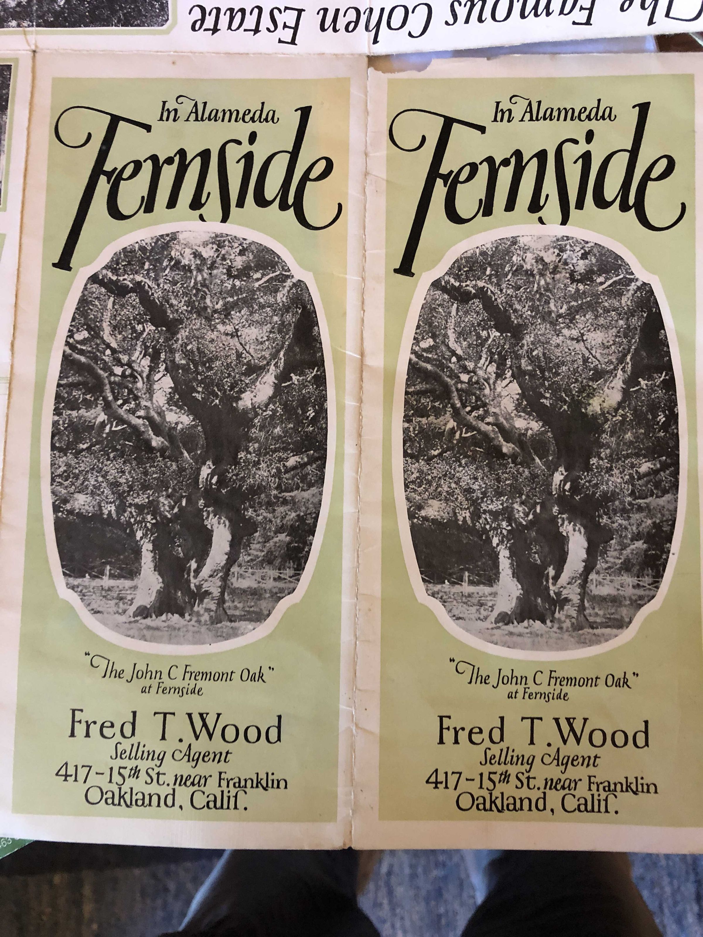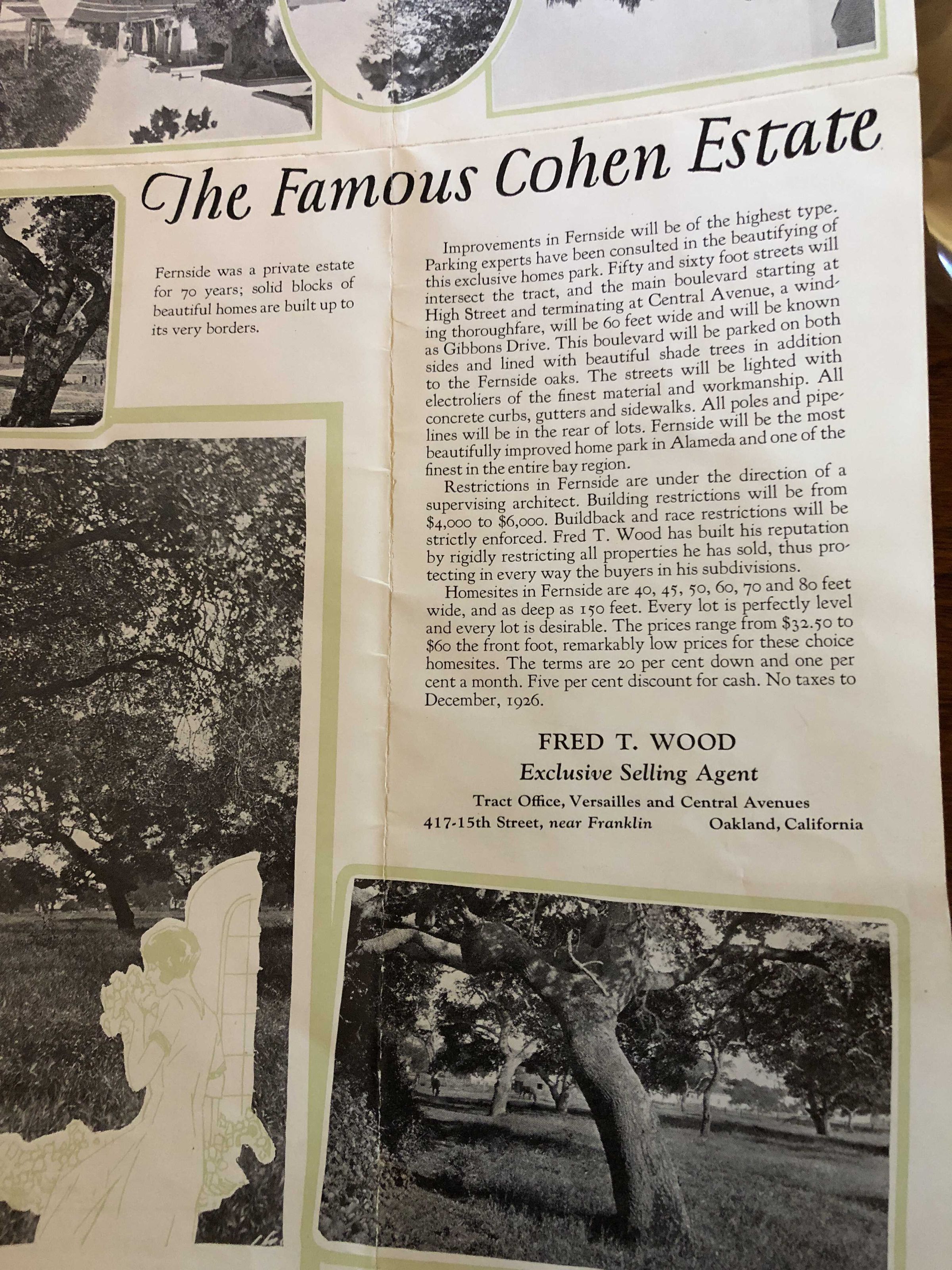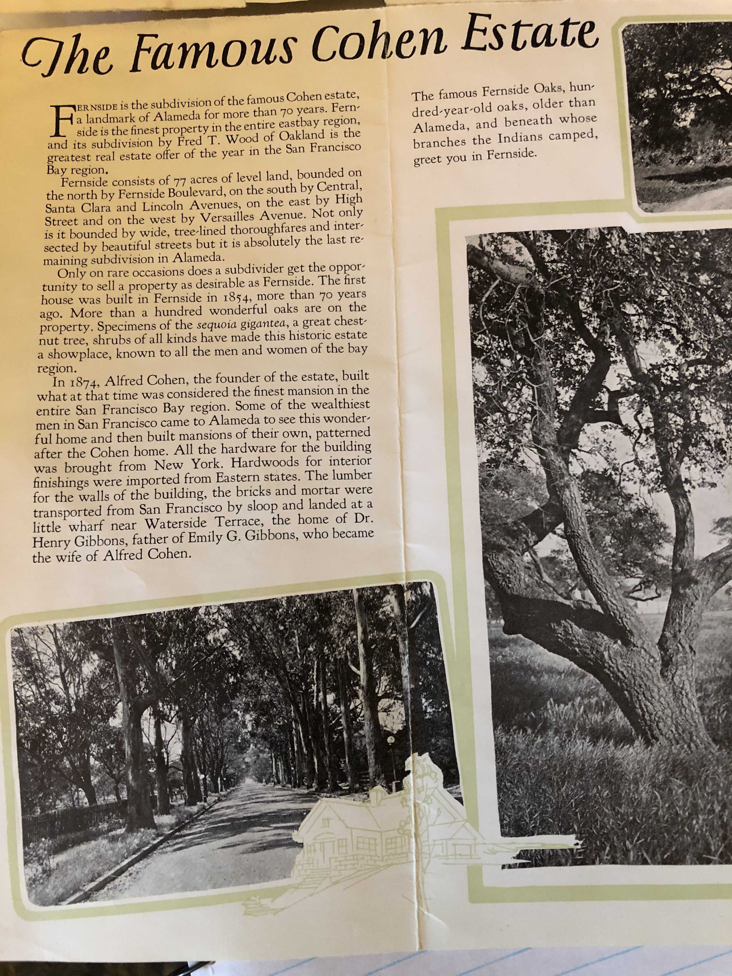 Realestate advertisement for subdivision of the Cohen Fernside Estate in Alameda 1925