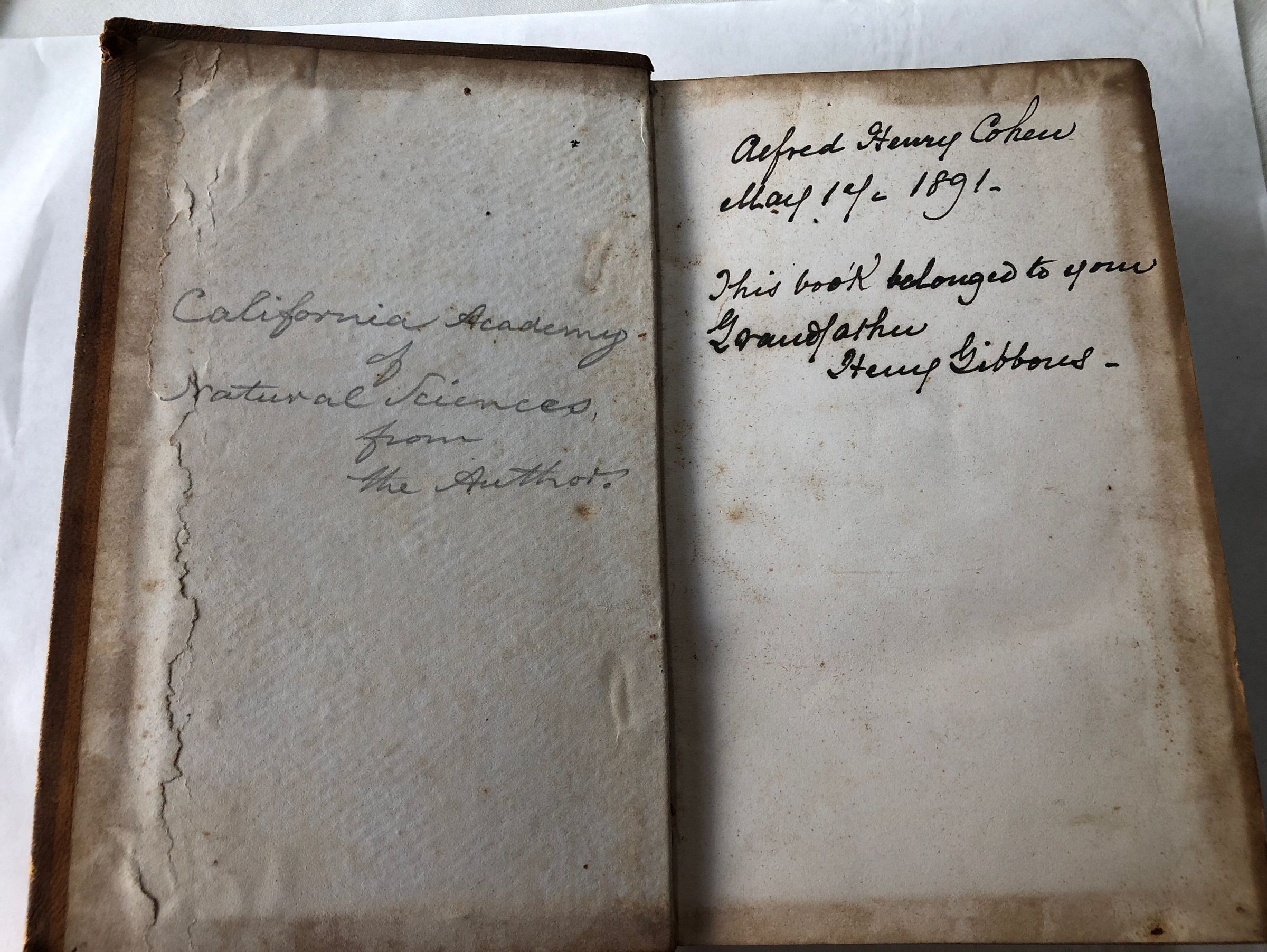 Alfred Henry Cohen May 17- 1891. This book belonged to your Grandfather Henry Gibbons