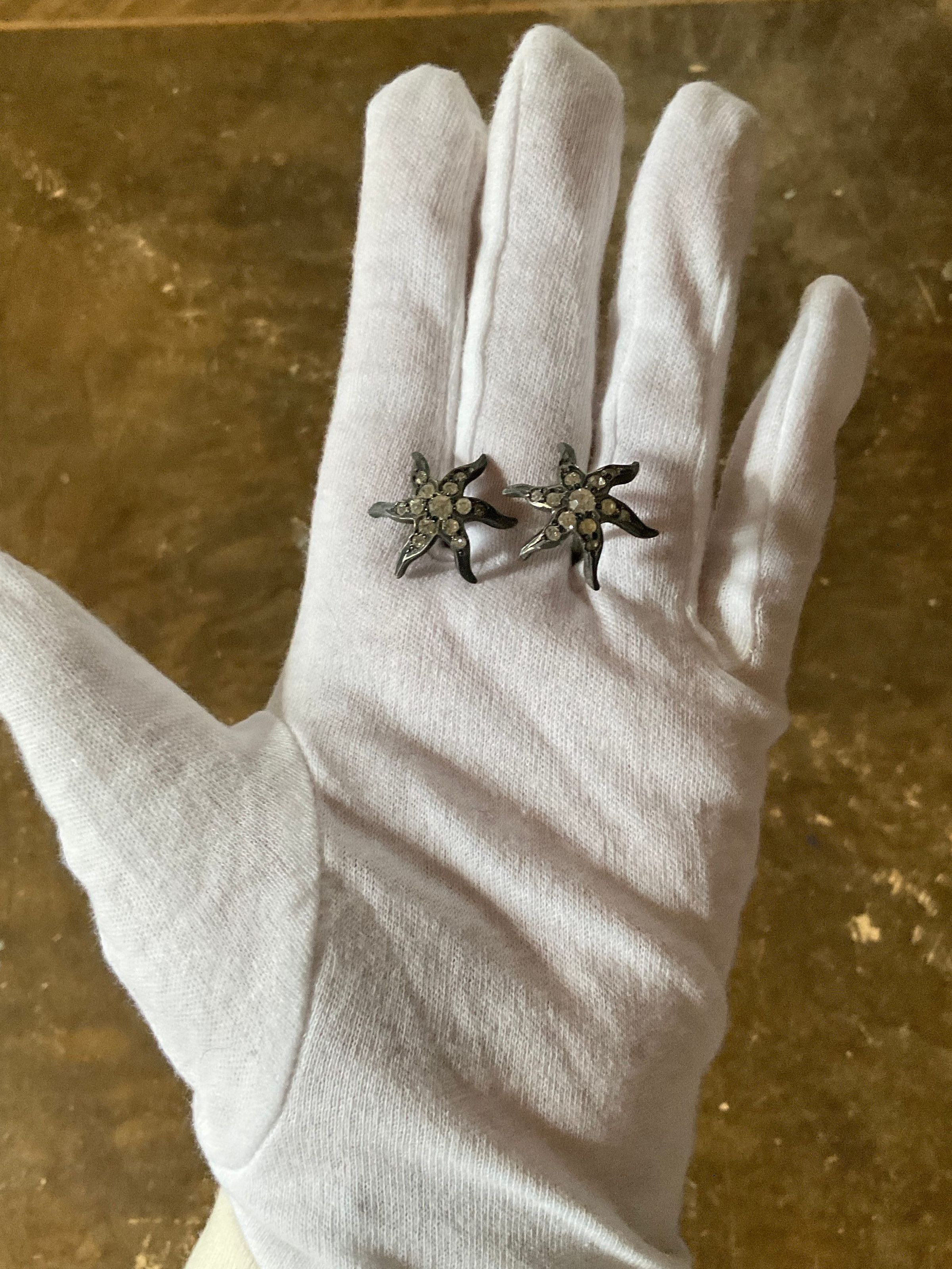 A set of flower hat pins. Each flower has 6 petals and patterned with jewels.