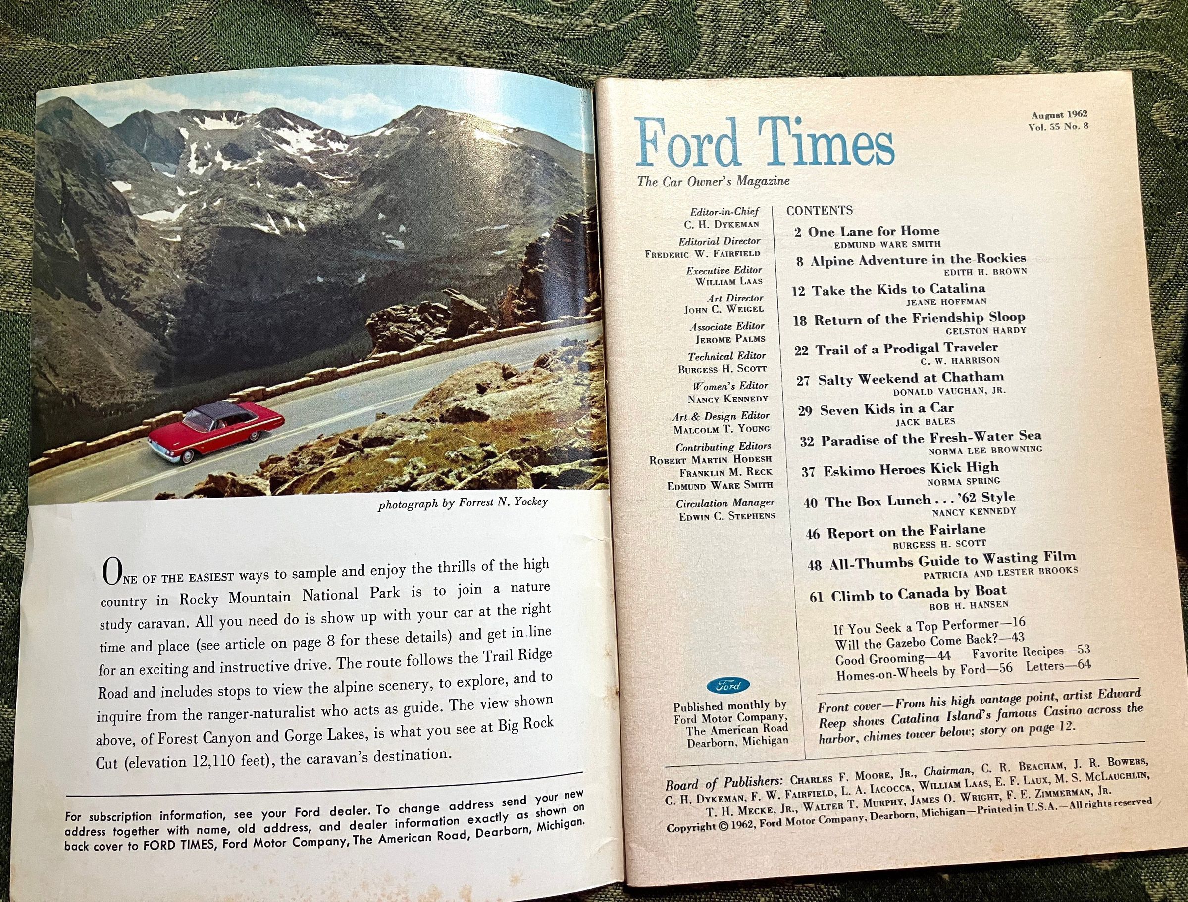 Ford Motor Company published Ford Times magazine from 1908 to 1917 and again from 1943 to 1993. Intended for dealers and consumers, the publication was key to Ford's public relations efforts. With articles emphasizing a range of topics, including automobiles but also recreation, food, history, nature, and culture, Ford Times became an important document of 20th-century American life. - The Henry FordCreate Date