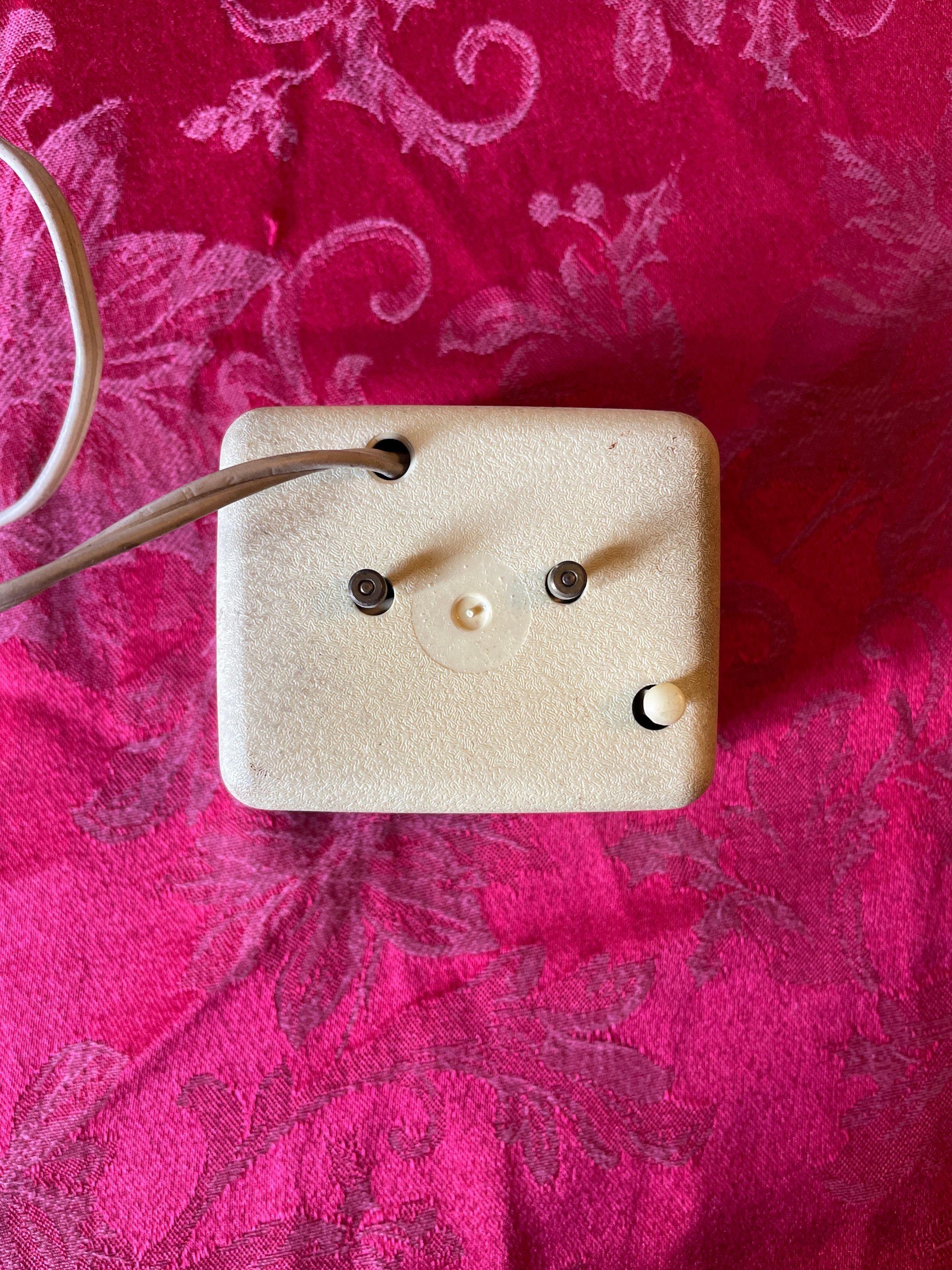 General Electric plug-in clock with a black face. It reads, “luminous” at the top and has four hands.