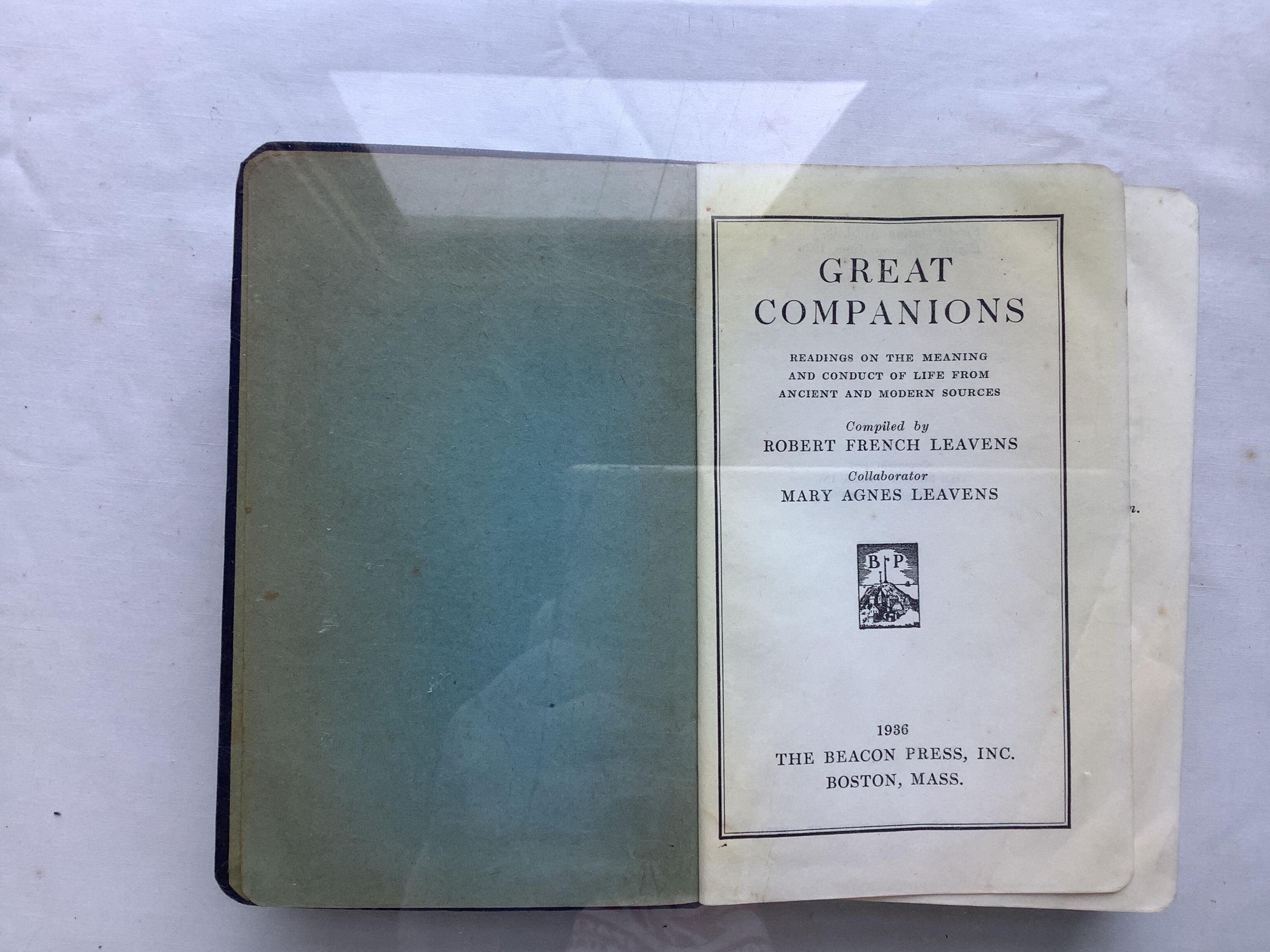 [The author seeks to] "order and improve" human life by gathering together, in selections of reasonable length, the best that has been said on certain aspects of the problems of right living. (...) The three main divisions of the little volume are Man in the Universe, The Conduct of Life, The Commonwealth. (...) The greater part of the selections are in prose, but poetry has not been neglected.--Dartmouth Alumni MagazineInscription/Signature/Marks