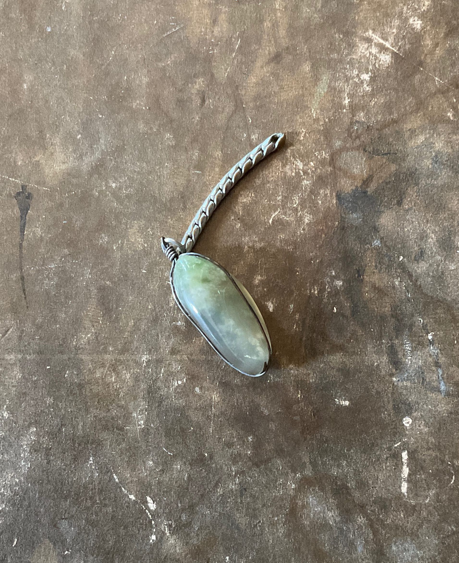 Green pendant that seems to have broken off from a larger piece. The pendant was found in one of Emma Cohen Bray’s purses among other personal notes.Collection