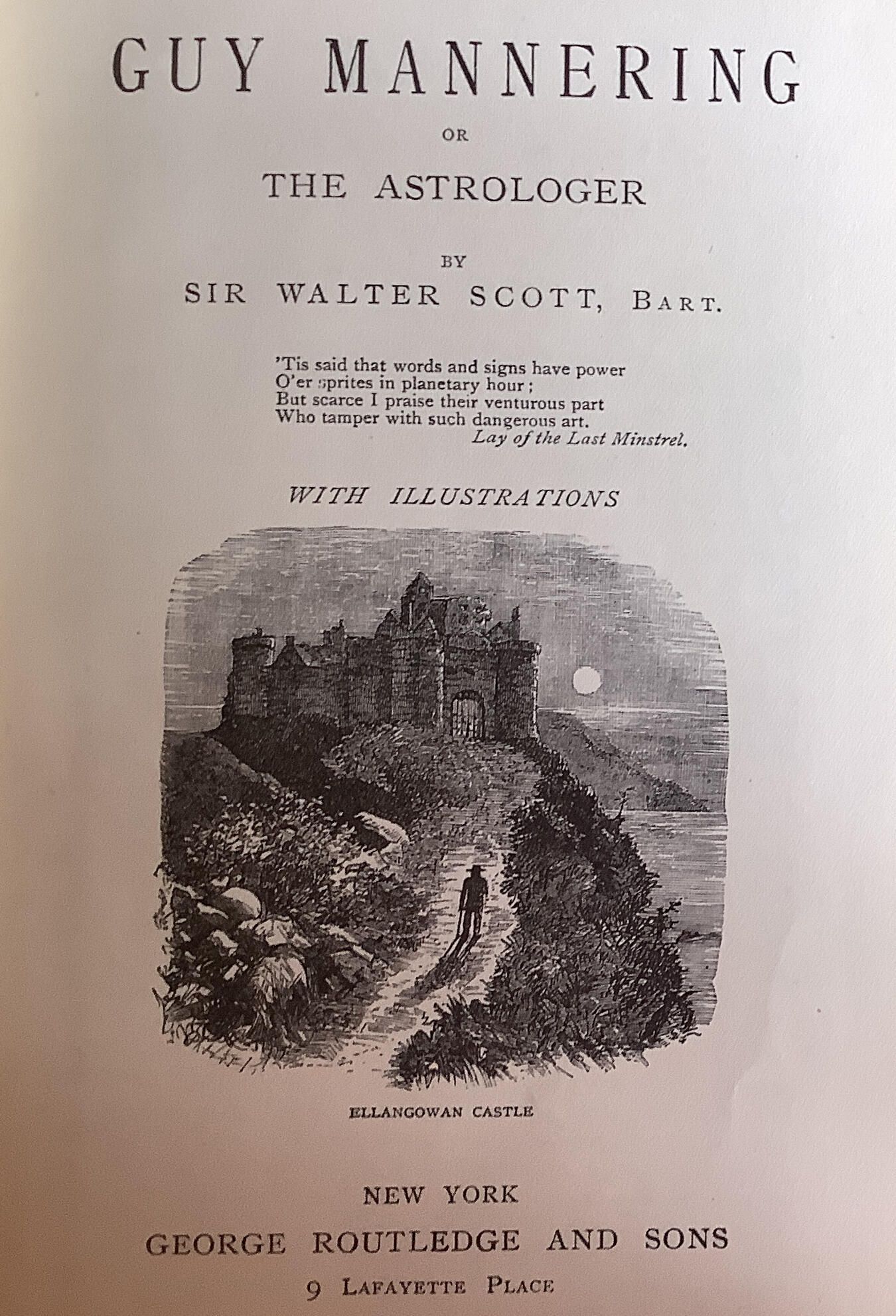 Guy Mannering is set in the 1760s to 1780s, mostly in the Galloway area of southwest Scotland, but with episodes in Cumberland, Holland, and India. It tells the story of Henry "Harry" Bertram, the son of the Laird of Ellangowan, who is kidnapped at the age of five by smugglers after witnessing the murder of a customs officer. It follows the fortunes and adventures of Harry and his family in subsequent years, and the struggle over the inheritance of Ellangowan. The novel also depicts the lawlessness that existed at the time, when smugglers operated along the coast and thieves frequented the country roads. -WikipediaCreate Date