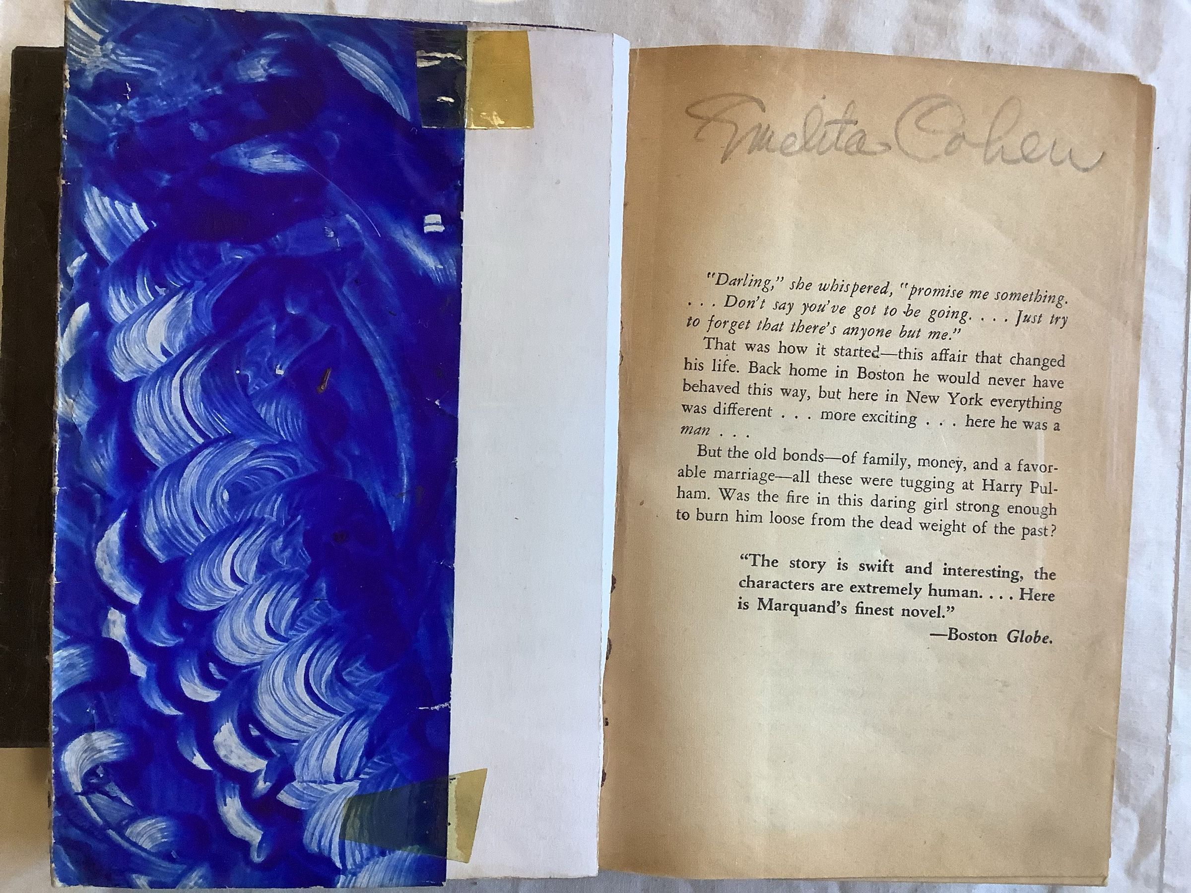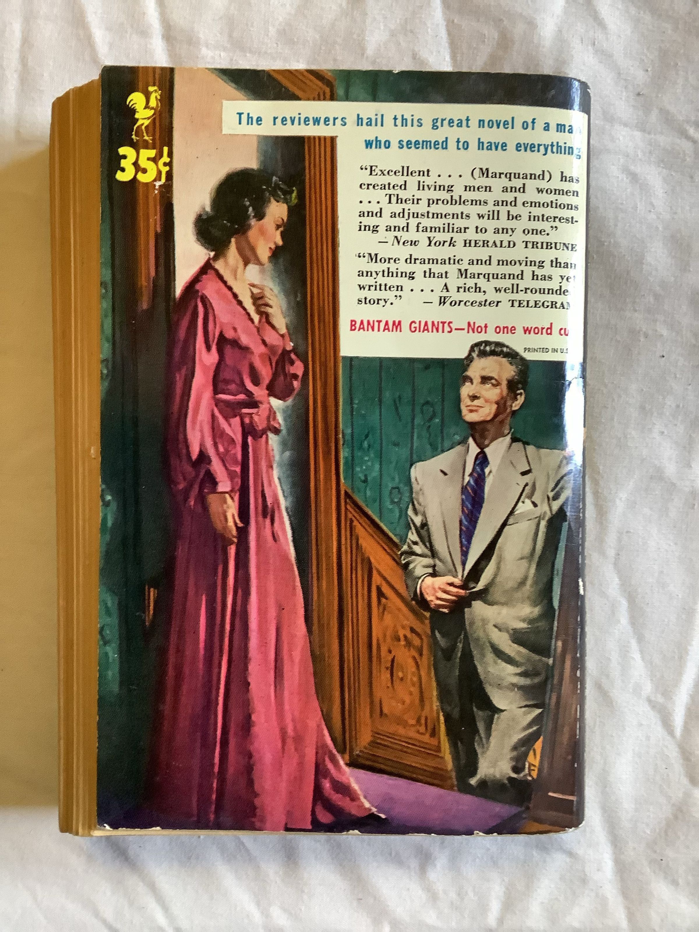 In preparation for the twenty-fifth reunion of his class at Harvard, Harry Pulham is asked to collect and edit the personal histories of his fellow alumni. A glance at the previous year’s class book tells him just how tedious the assignment will be: “I have been very busy all this time practicing corporation law and trying to raise a family,” a typical entry reads. “I still like to go to the football games and cheer for Harvard.” Harry’s autobiography is almost indistinguishable from those of his classmates. From his career at a Boston investment firm to his marriage to childhood friend Kay Motford, he has always made the safe, familiar choice -- with one exception. For a brief interlude after World War I, Harry joined an advertising agency in Manhattan and fell in love with a beautiful, independent woman unlike anyone he had ever met. A wholly unexpected future opened up for him in those few months, but when family obligations called him back to New England, the relationship came to a sudden end. Now, twenty years later, Harry believes that his story could not have turned out any other way. --AmazonInscription/Signature/Marks
