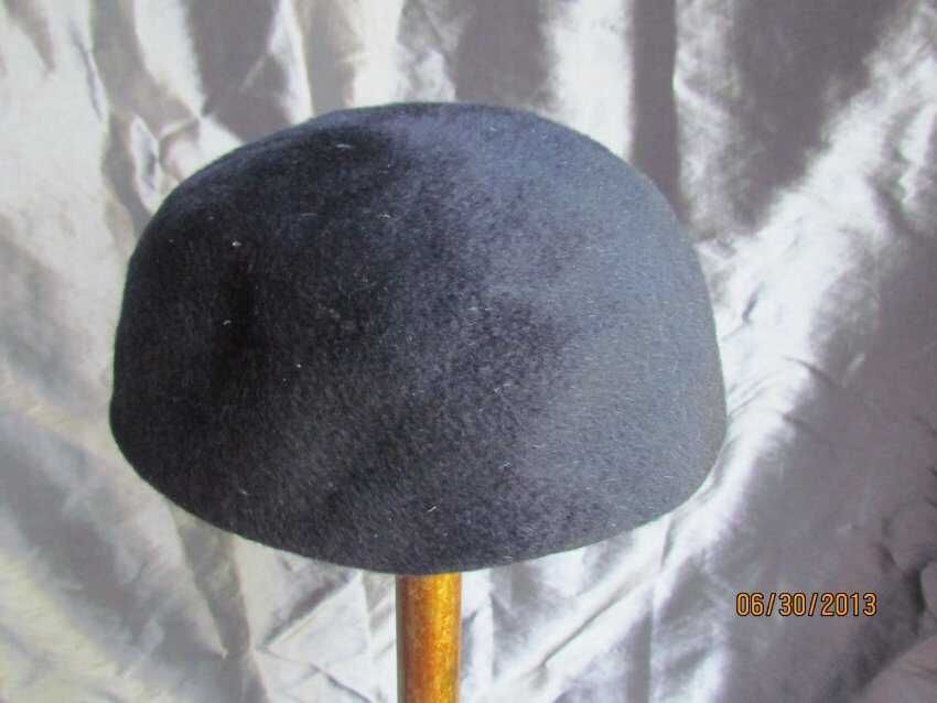 Hat, cap, blue fur felt with inside label reads, "Grace Macintyre Distinctive Millinery Oakland".Collection