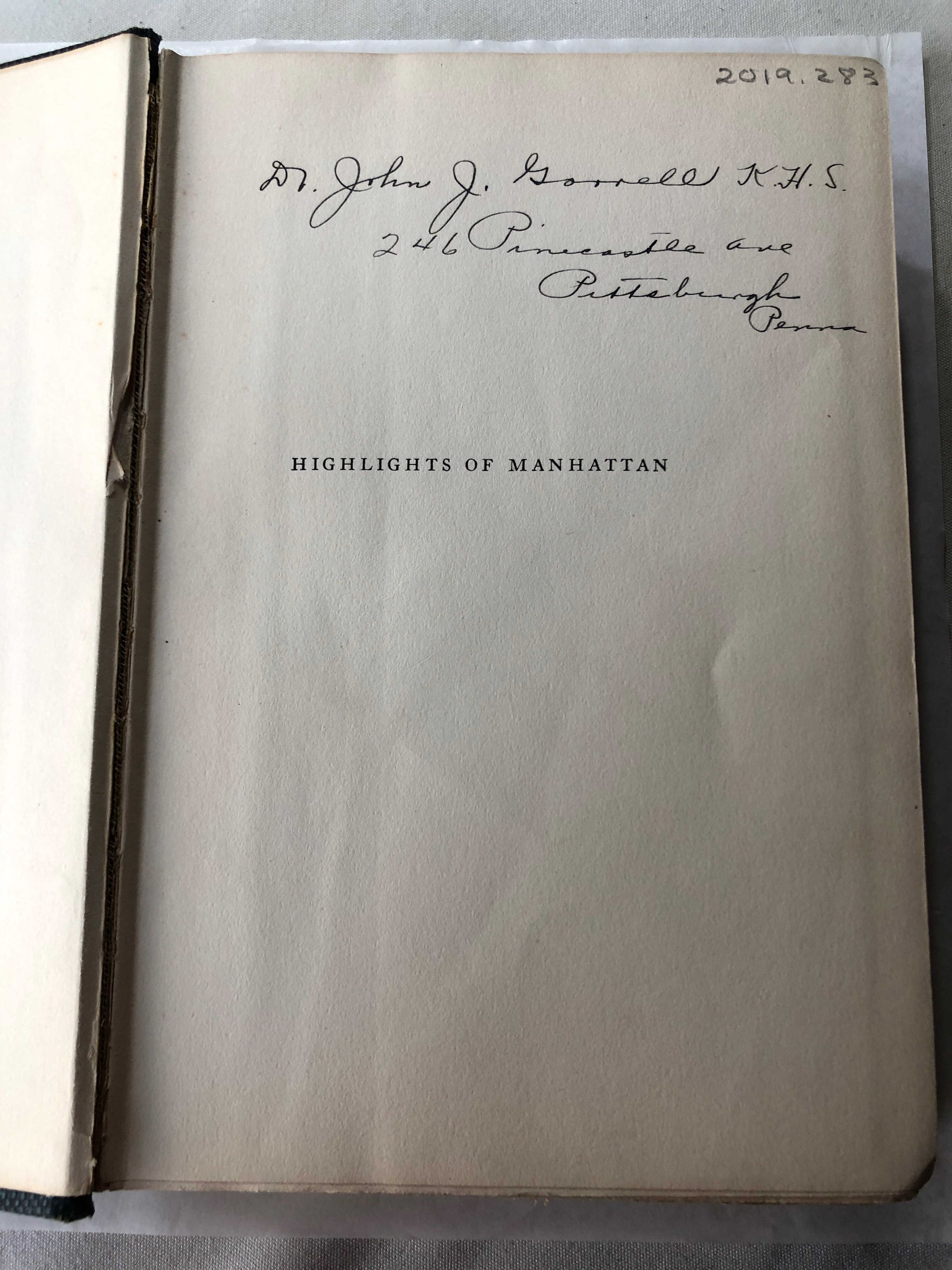 Dr. John J. Gonbell [?] K.H.S. 246 Pinecastle Ave Pittsburgh Penna